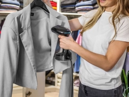 Retouchez les vêtements directement sur cintre. La poignée pliante économise de la place et rend l’appareil idéal à la maison comme en voyage.