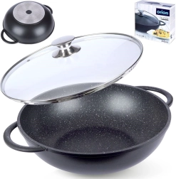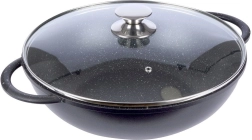 Découvrez une cuisson confortable avec ce wok en aluminium robuste doté d’un revêtement intérieur granit PFLUON, antiadhésif, résistant aux rayures et aux hautes températures. Grâce à sa large base et à ses parois hautes, il est idéal pour le stir‑fry, les légumes, la viande et les pâtes. Le couvercle en verre transparent avec bord inox et orifice d’évacuation de vapeur facilite le contrôle de la cuisson.
