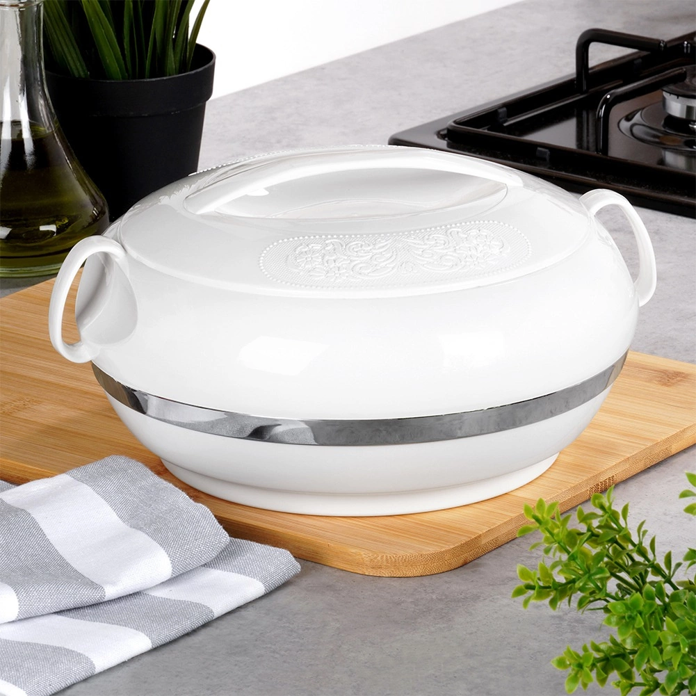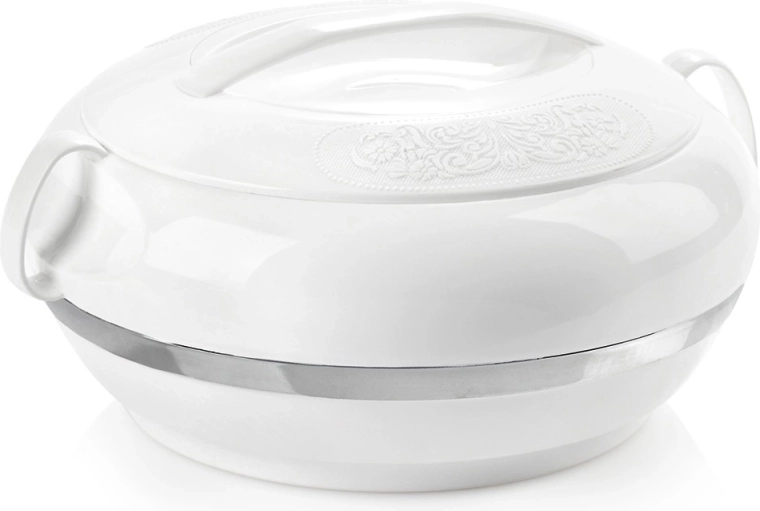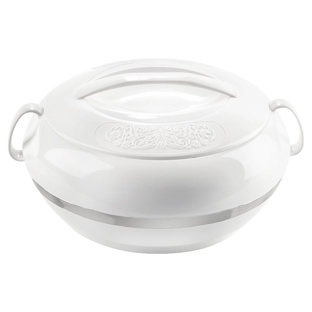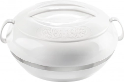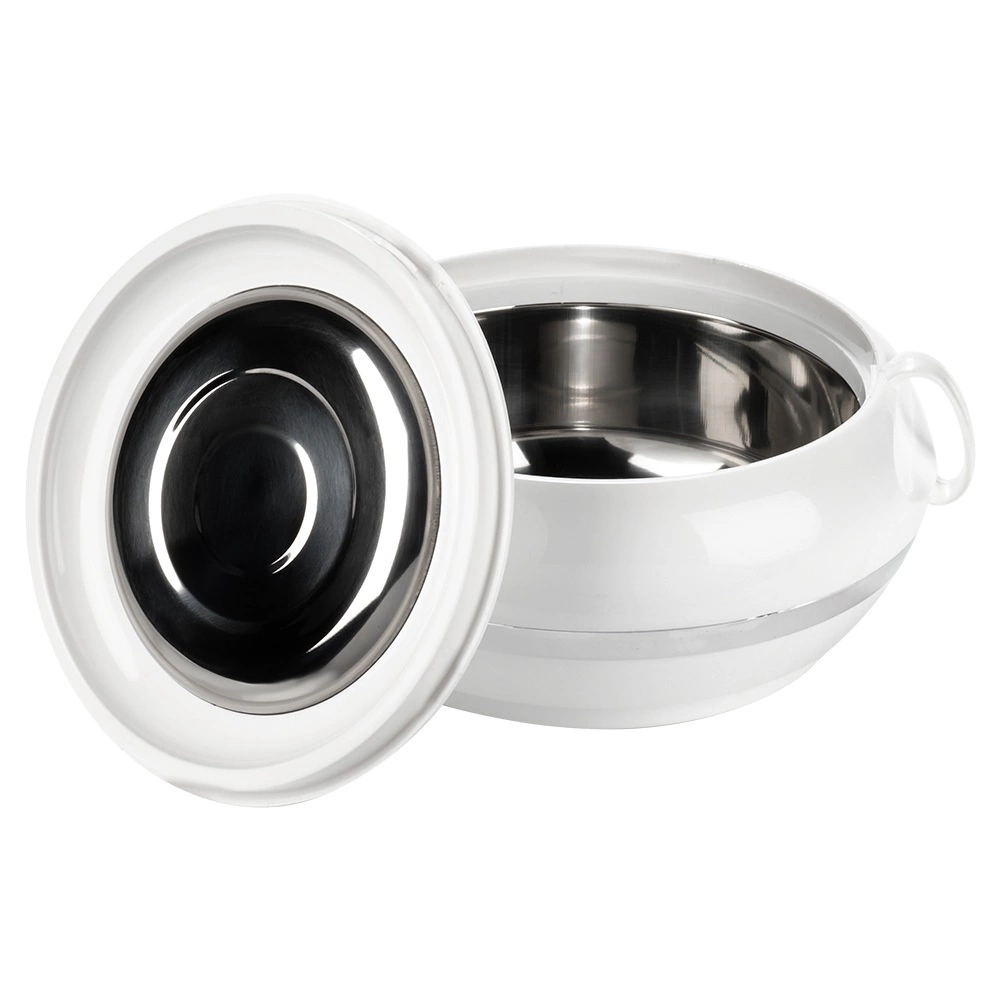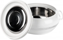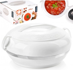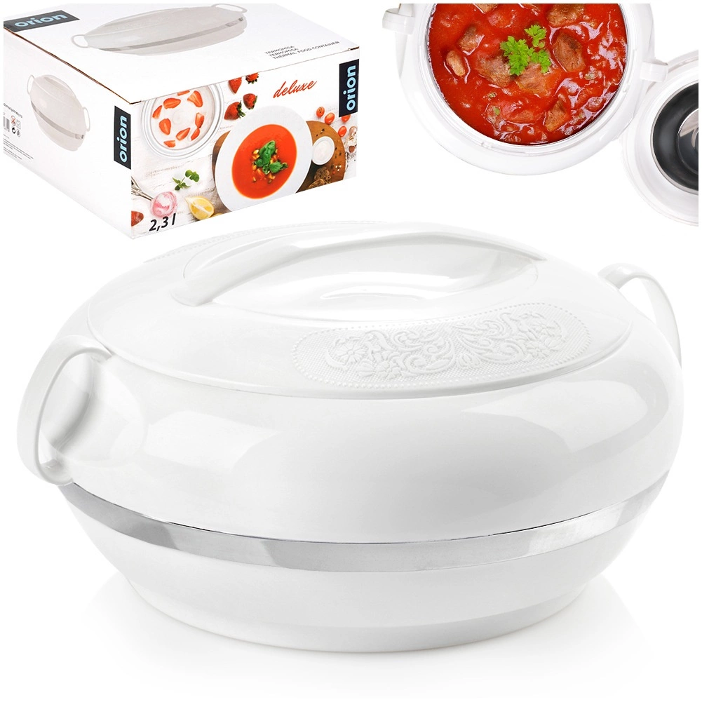 La pratique thermobol ORION Deluxe d’une capacité de 2,3 l maintient vos plats chauds plus longtemps ou agréablement frais. La combinaison d’une coque extérieure en plastique et d’un insert intérieur en acier inoxydable assure une isolation thermique efficace jusqu’à 2 heures. Grâce au couvercle rotatif à relief décoratif et à la poignée robuste, le transport est aisé et le service élégant.
