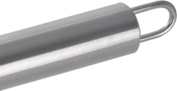 L’œillet au bout du manche permet une suspension aisée sur une barre de cuisine et un gain de place.