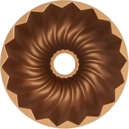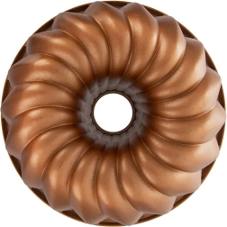 Moule à bundt élégant avec cheminée de 24 cm de diamètre, de la collection MARISSA, en aluminium de haute qualité avec revêtement antiadhésif PFLUON à deux couches. Grâce au fond profilé, vous créez des desserts spectaculaires et, grâce à l’antiadhérence, vous démoulerez facilement chaque part. Convient aux fours à gaz et électriques, résistant jusqu’à 200 °C, avec une finition cuivrée pour une pâtisserie stylée.