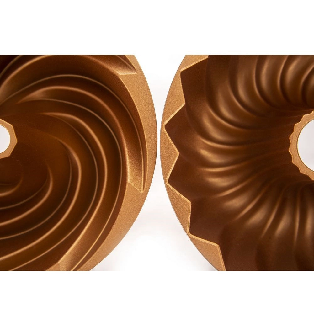 Ce moule à bundt robuste avec cheminée est idéal pour la pâtisserie du quotidien comme pour les desserts de fête. Fabriqué en aluminium de qualité avec une couche antiadhésive PFLUON à l’intérieur, il assure une répartition homogène de la chaleur et un démoulage sans problème de la pâte cuite. La finition cuivrée apporte un style unique à votre cuisine.