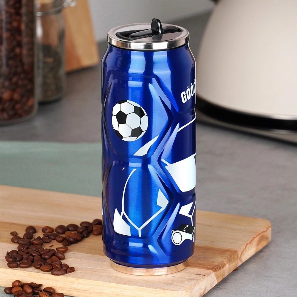 Gobelet isotherme en forme de canette avec motif de football, bleu 500 ml