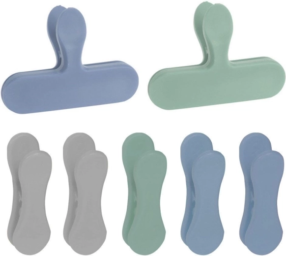 Cinq petites pinces (6,5 cm) et deux plus grandes (9 cm) couvrent aussi bien les petits sachets d’épices que les emballages plus volumineux de pâtes ou de chips.