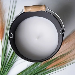 Bougie parfumée dans un seau métallique avec anse