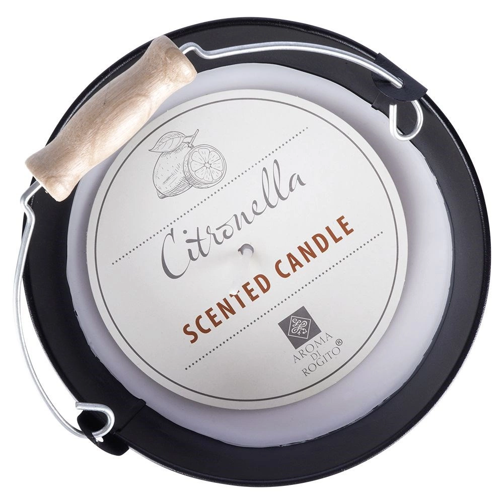 Une bougie parfumée élégante dans un seau métallique avec anse apporte à votre intérieur comme à votre terrasse un parfum de citron intense et une longue durée de combustion. Sa conception résistante en métal noir, son anse mêlant bois et métal, ainsi que son relief décoratif en font également un bel objet de décoration. Adaptée à l’intérieur comme à l’extérieur, elle crée une ambiance agréable, fraîche et relaxante et peut aider à repousser les insectes.