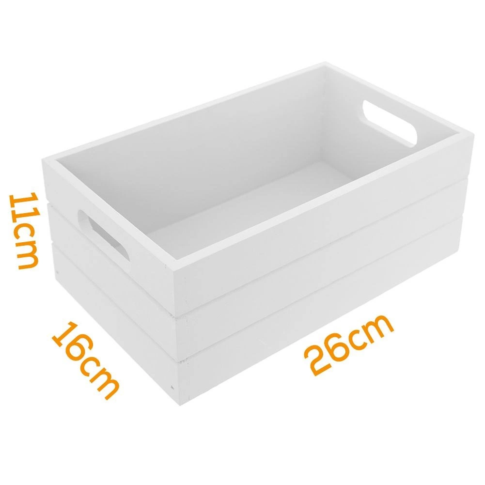 Cette caisse en bois blanche est un excellent choix pour un rangement stylé et ordonné à la maison comme au bureau. Grâce à ses dimensions compactes de 26 × 16 × 11 cm, elle trouve sa place sur une étagère, une commode ou un bureau, et ses poignées ovales permettent un transport confortable.