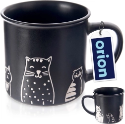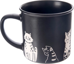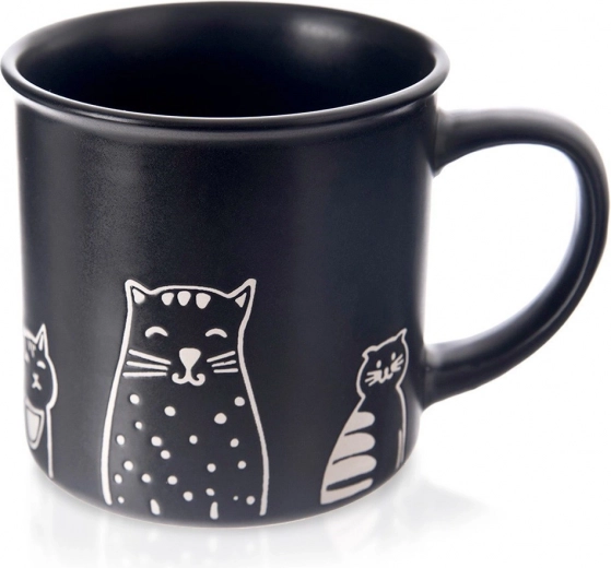 Un mug en céramique élégant d’une capacité de 500 ml en noir mat avec de motifs de chats ludiques, idéal pour le café, le thé et le cacao. Il possède une anse confortable, est compatible lave-vaisselle et micro-ondes et grâce à sa céramique de qualité, il résiste à une utilisation quotidienne.