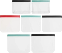 Pratique ensemble de 7 sachets zip transparents en trois tailles pour le stockage quotidien des aliments à la maison comme en déplacement. Grâce à la fermeture zip hermétique, ils gardent le contenu frais plus longtemps, sont robustes et réutilisables, adaptés au réfrigérateur et au congélateur et transparents pour un contrôle rapide du contenu.