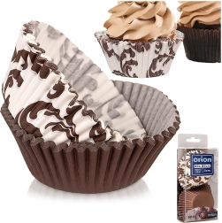 Ensemble pratique de 60 caissettes en papier pour muffins de 7,5 cm de diamètre pour une cuisson et un service faciles. Résistent jusqu’à +220 °C, en couleurs marron et blanc avec motif marron. Les caissettes préviennent l’attache et la brûlure de la pâte, facilitent le démoulage et offrent un aspect décoratif à vos muffins et autres desserts.