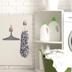 Rangez vos accessoires de ménage et outils longs en toute sécurité et de façon ordonnée au mur. Les supports autocollants avec base en inox et rouleaux en caoutchouc s’adaptent automatiquement à l’épaisseur du manche et le serrent fermement. Grâce à une capacité de charge jusqu’à 5 kg, ils conviennent aux accessoires légers comme plus robustes.