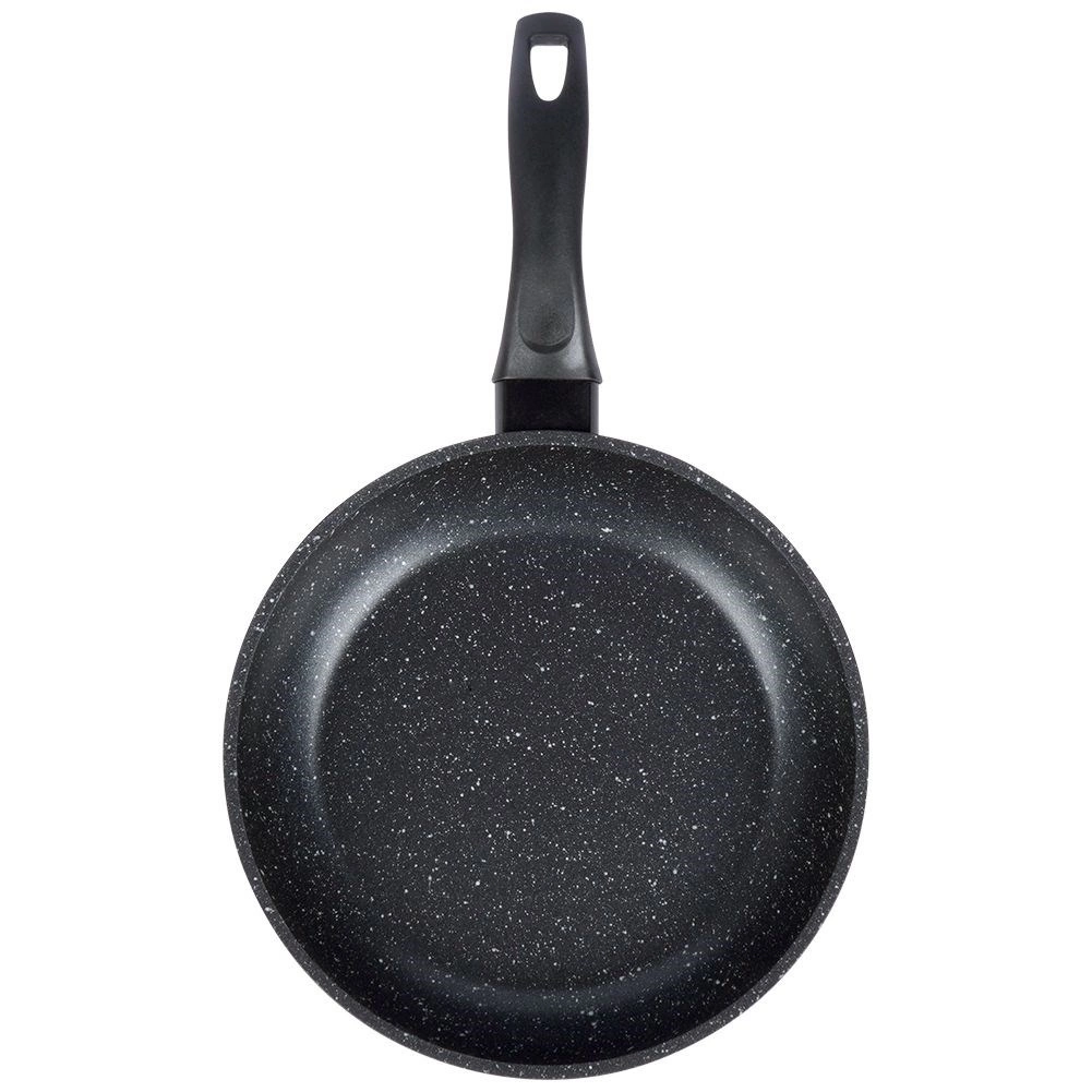 Poêle robuste en fonte d’aluminium au look granit élégant, idéale pour frire et mijoter viandes, légumes, ainsi que pour préparer crêpes et pancakes. Le revêtement granit antiadhésif sans PFOA ni PTFE assure un démoulage facile et une cuisine plus saine avec un minimum d’huile.