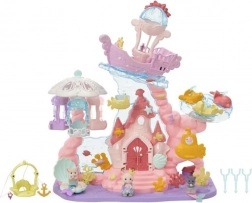 Entrez dans un monde magique avec ce palais sous-marin riche en fonctions interactives. Les enfants peuvent transporter leurs figurines en téléphérique, faire tourner le carrousel de méduses et de créatures marines, naviguer en sous-marin ou chevaucher un mignon poisson jaune. Les nombreux détails, éléments translucides et couleurs pastel en font une scène envoûtante pour des histoires sans fin.