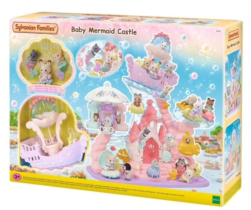- Accessoires riches : palais, 3 figurines, téléphérique, carrousel, sous-marin, poisson jaune, trésor, portes ouvrantes, lit-coquillage.