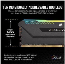 La série Vengeance RGB Pro SL combine des performances DDR4 de premier plan avec une hauteur compacte de 44 mm, s’intégrant ainsi sans difficulté dans des configurations plus exiguës avec de grands refroidisseurs à air. Chaque module est équipé de LED RGB adressables individuellement, faciles à synchroniser avec les autres composants.