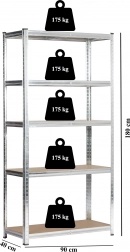 Chaque tablette supporte jusqu’à 175 kg, assurant une grande robustesse même pour le stockage d’objets lourds et de cartons. Idéal pour garages, ateliers et entrepôts.