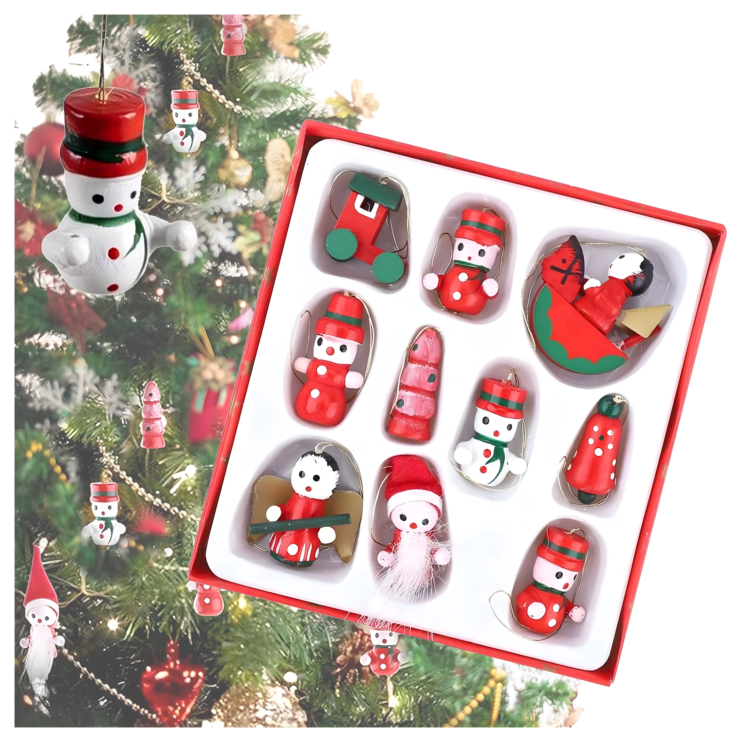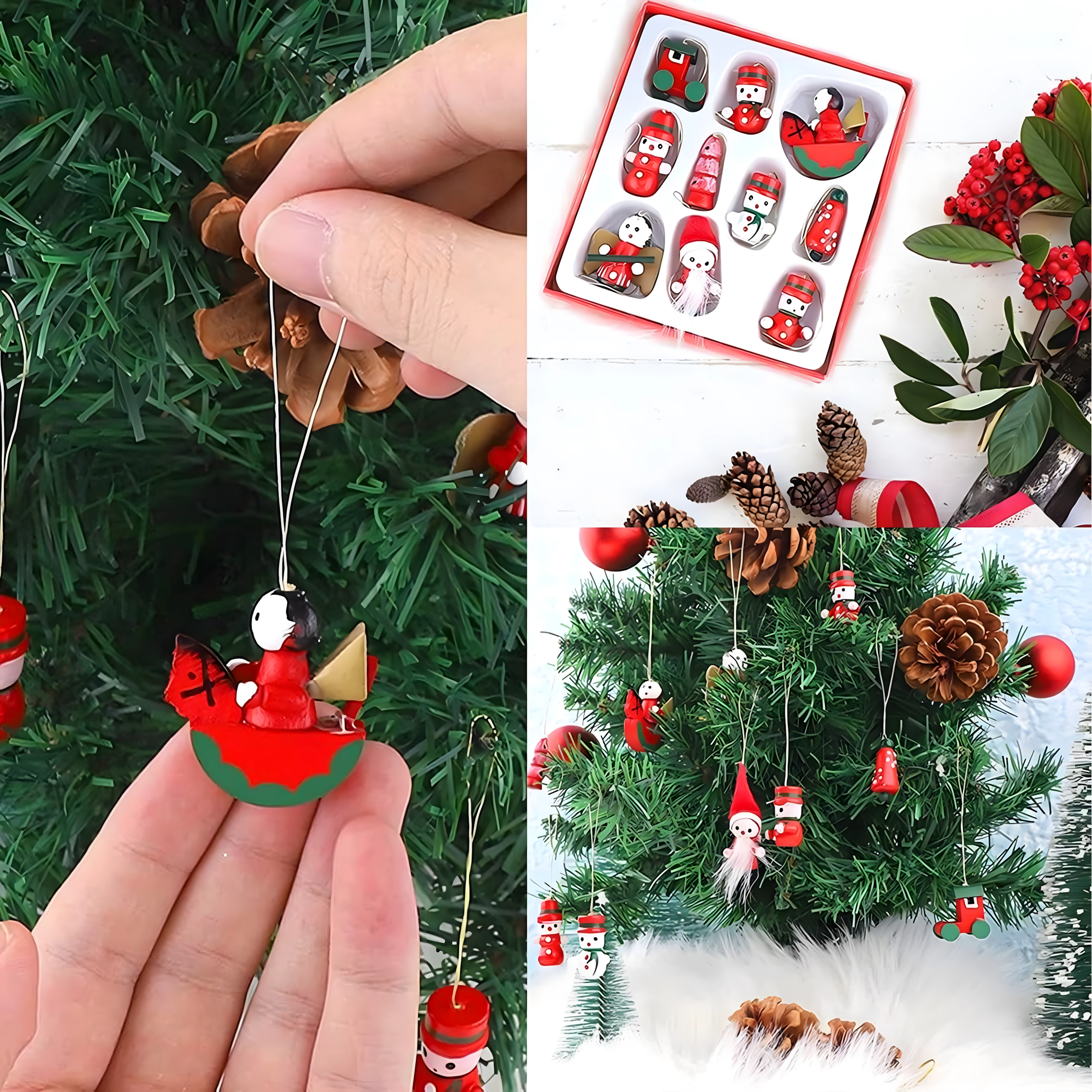 Lot de 10 suspensions de Noël en bois est une décoration intemporelle qui apporte de la magie à tout sapin et à toute ambiance festive. Elles sont fabriquées en bois léger et incassable, donc sans danger pour les enfants et les animaux de compagnie. Les motifs variés – botte, Père Noël, sapin, ange, cloche et autres – créent à la maison une atmosphère chaleureuse et festive.