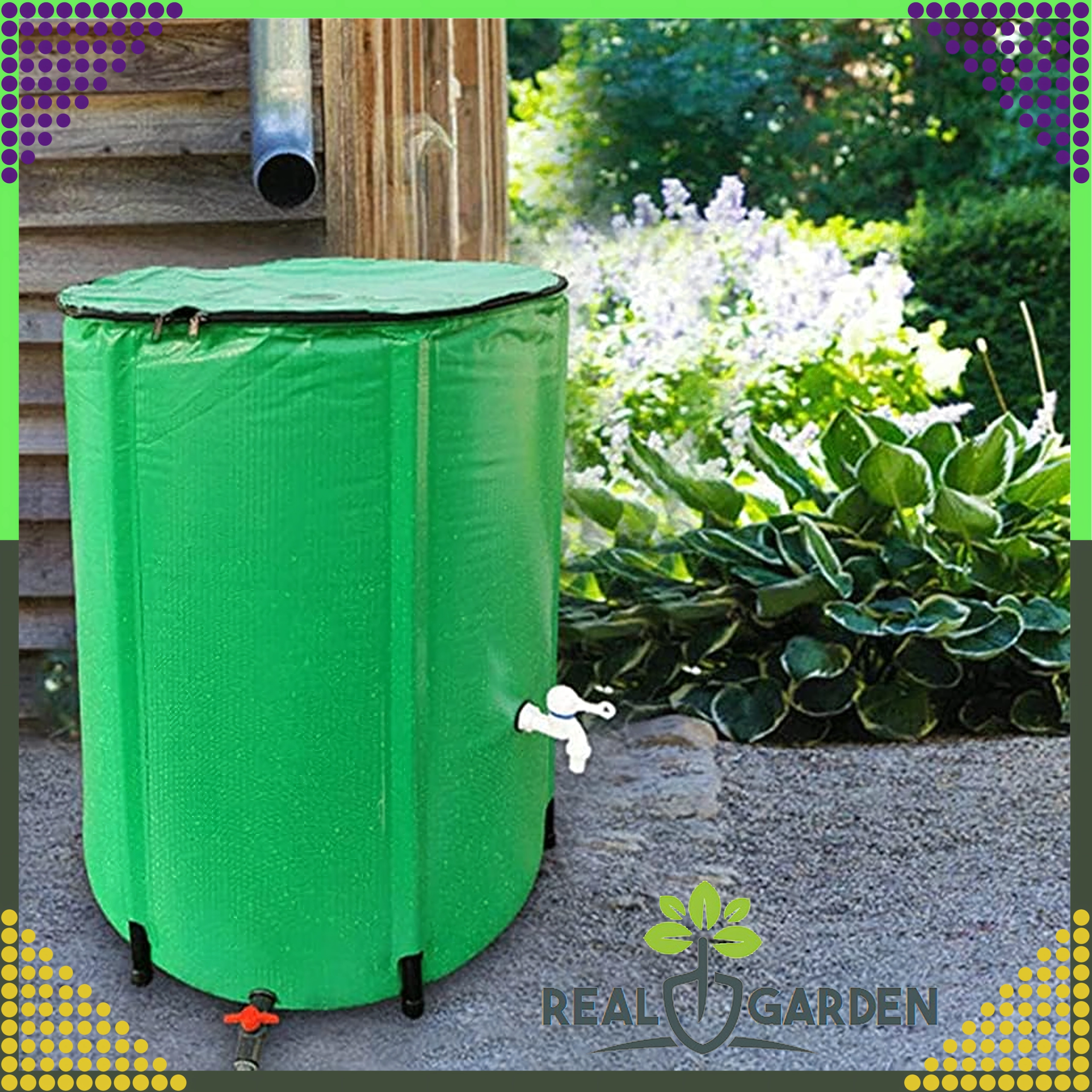 Placez simplement le tonneau près de la gouttière sur une surface plane. En fin de saison, pliez-le à plat et stockez-le sans difficulté. Une excellente solution pour les jardins petits à moyens, les terrasses et les chalets.