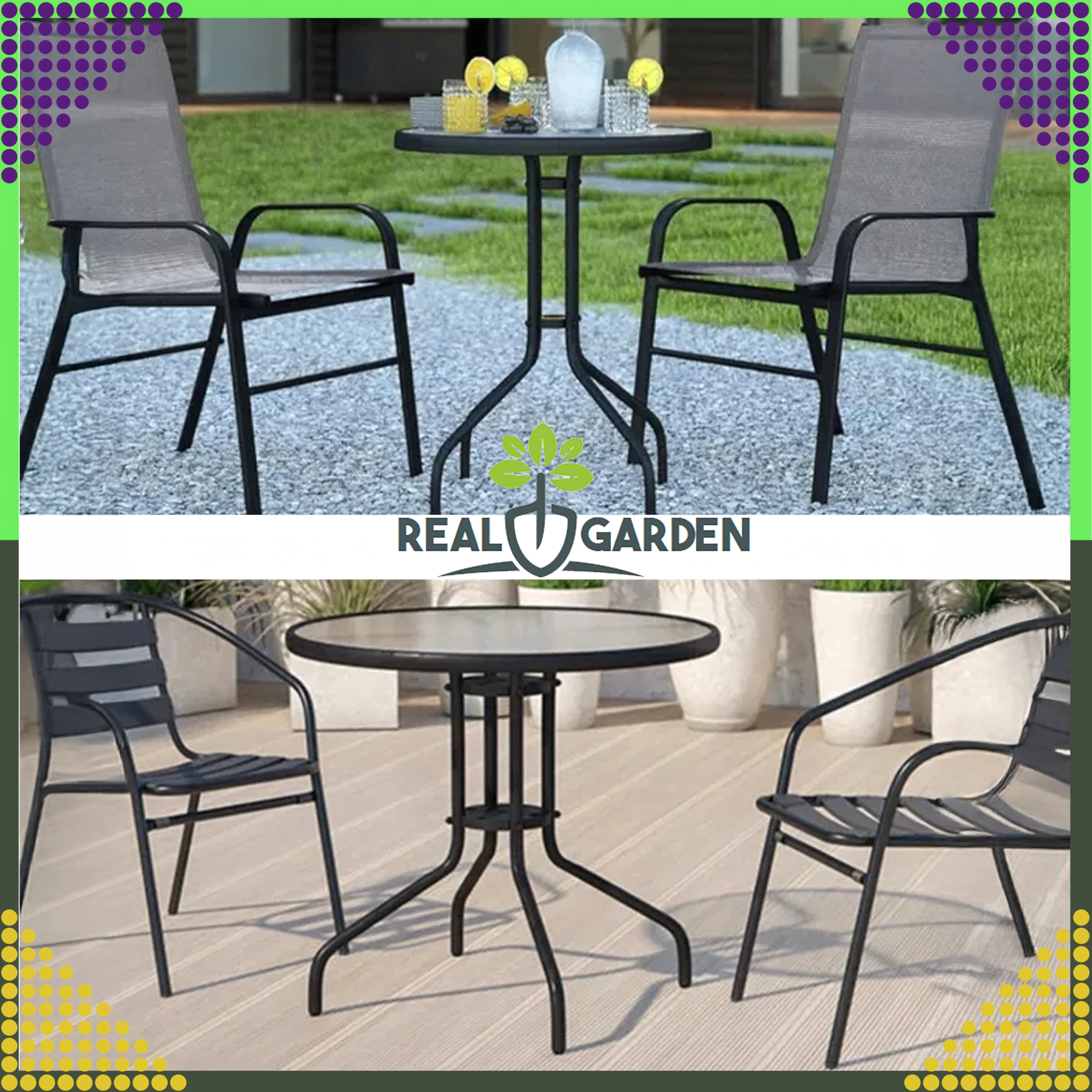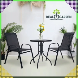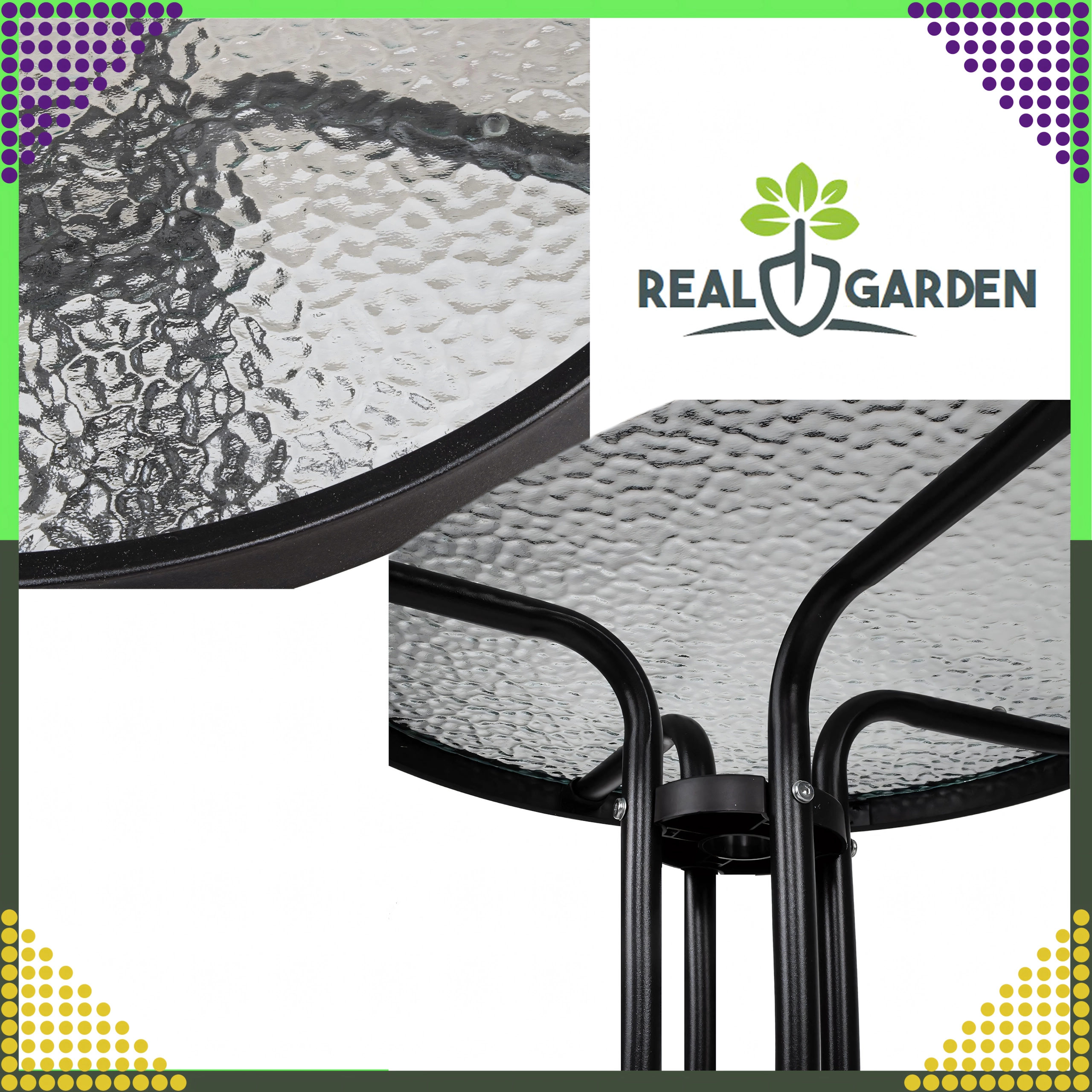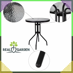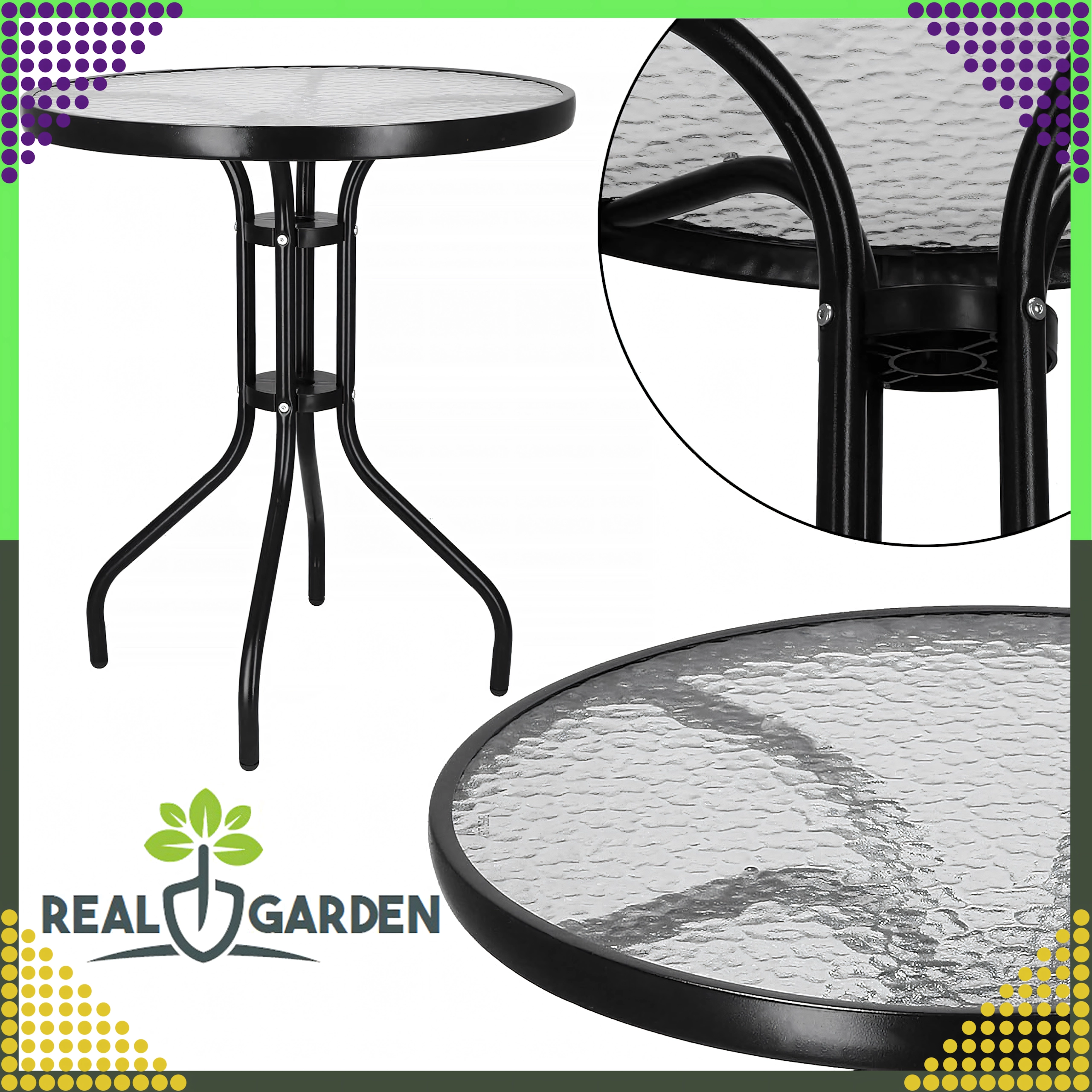 Le cadre robuste en acier avec revêtement par poudre apporte stabilité et protection contre la corrosion, ce qui rend la table idéale pour l’extérieur – balcon, terrasse, patio et jardin. Grâce à sa couleur noire universelle, elle s’harmonise avec la plupart des meubles de jardin et offre un look moderne et élégant.