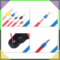 Dans un organiseur rigide, vous trouverez 1200 pcs de cosses en 7 tailles courantes, clairement séparées dans des compartiments. L’utilisation est simple : après dénudage de l’extrémité du conducteur, enfilez la cosse et sertissez avec une pince à sertir. L’extrémité ainsi préparée tient ensuite de manière fiable dans les bornes à vis et garantit un contact électrique stable.