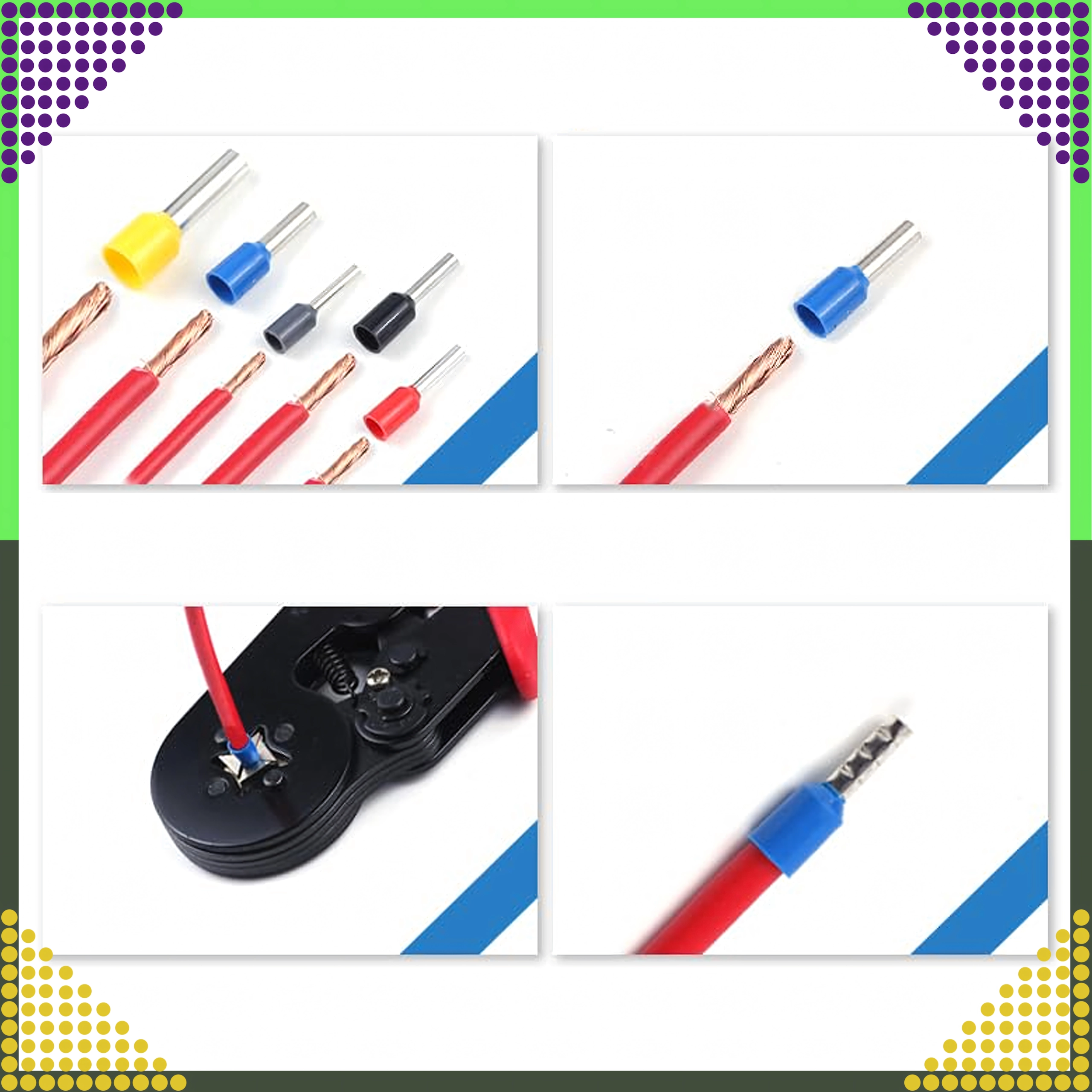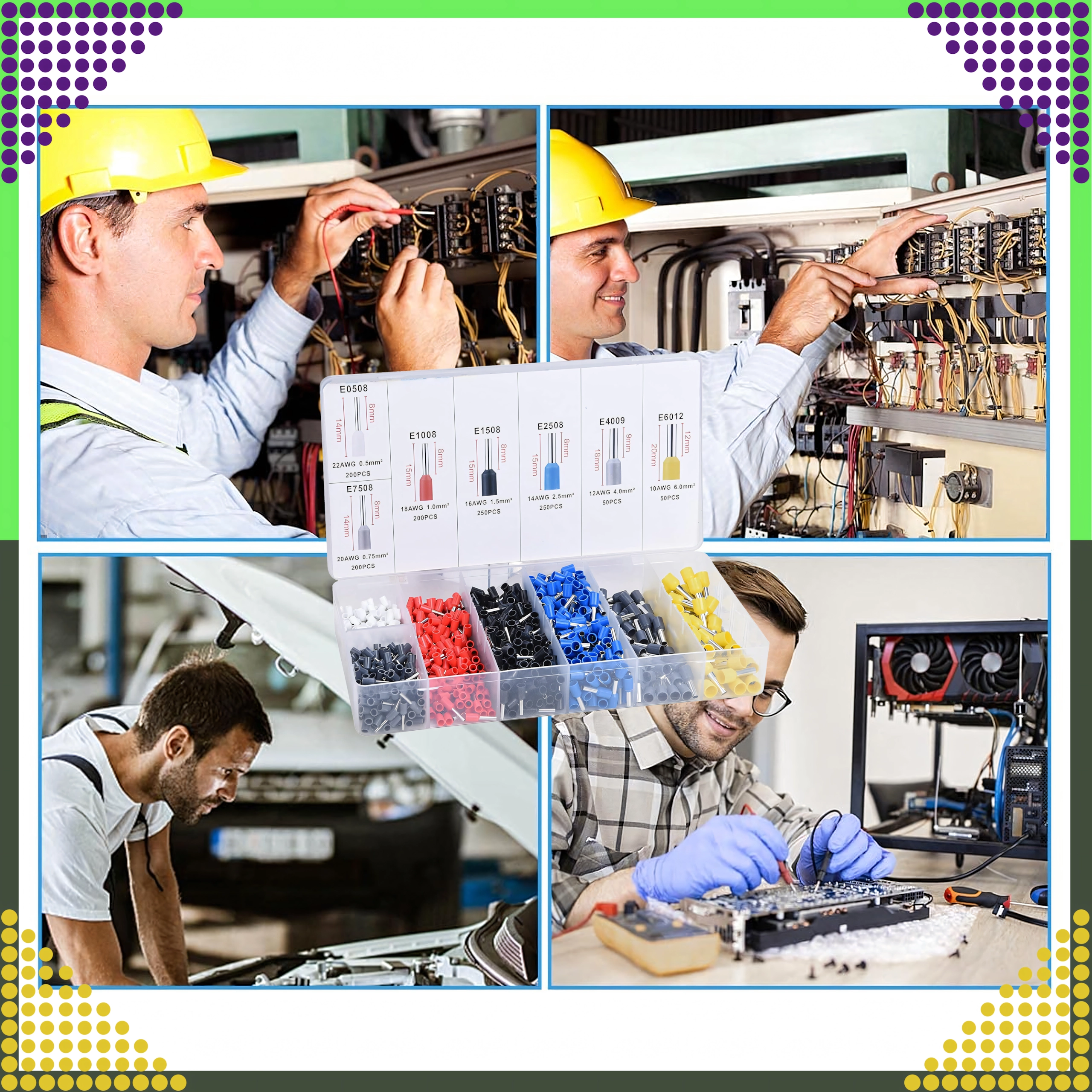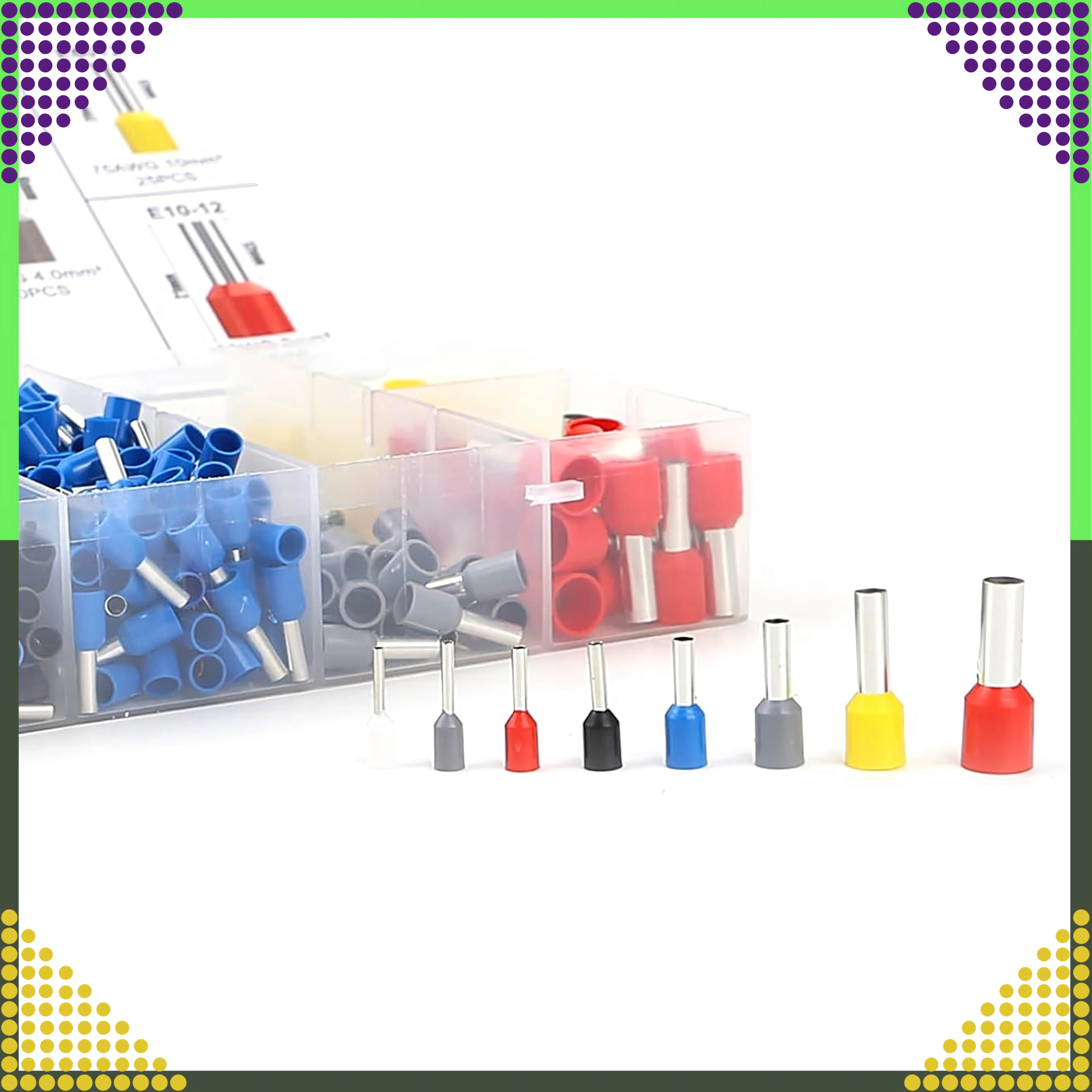 Set de cosses tubulaires isolées pour conducteurs, 1200 pcs, plusieurs tailles et couleurs