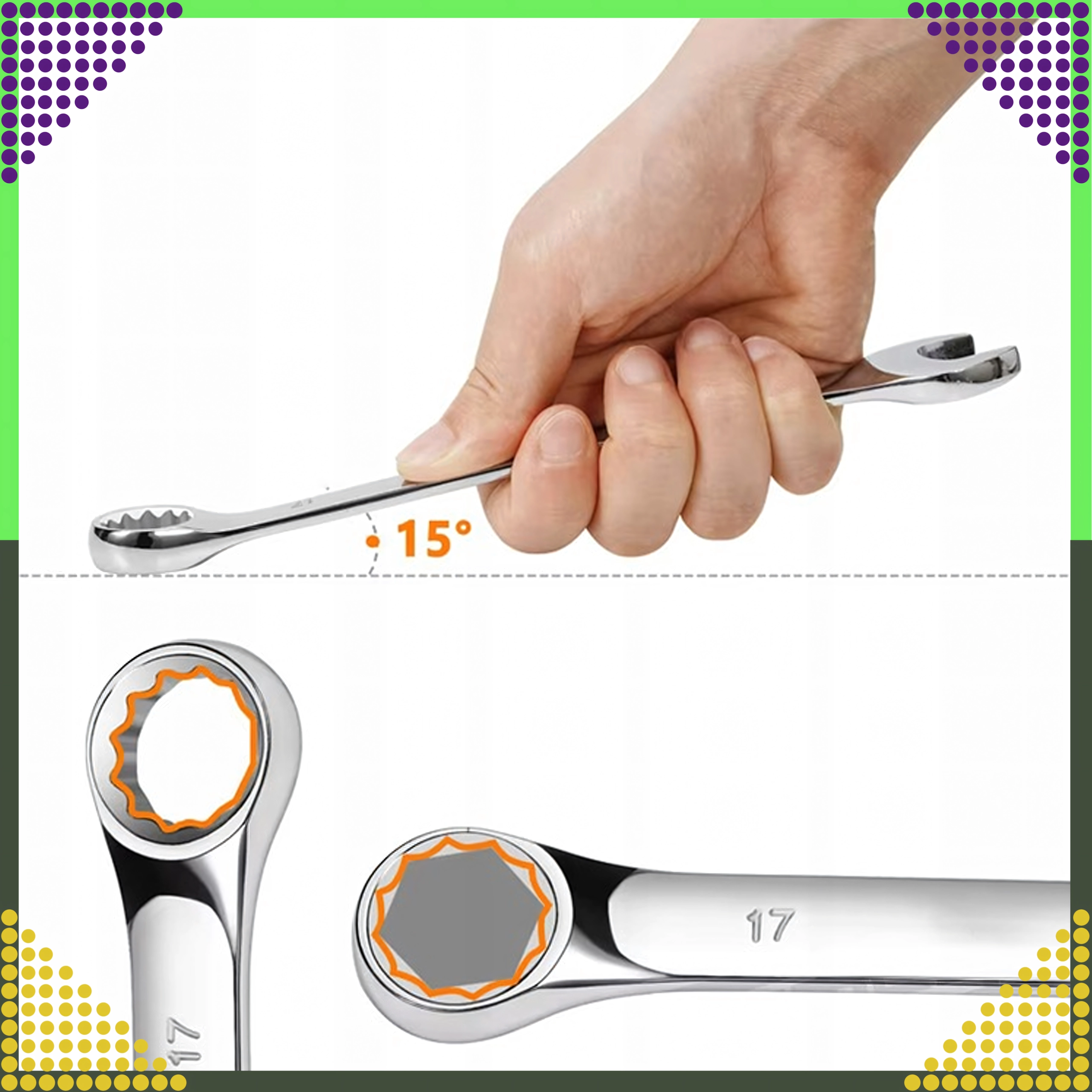 Le mécanisme à cliquet accélère le serrage et le desserrage sans repositionner la clé – idéal dans les espaces confinés et pour les opérations répétitives.