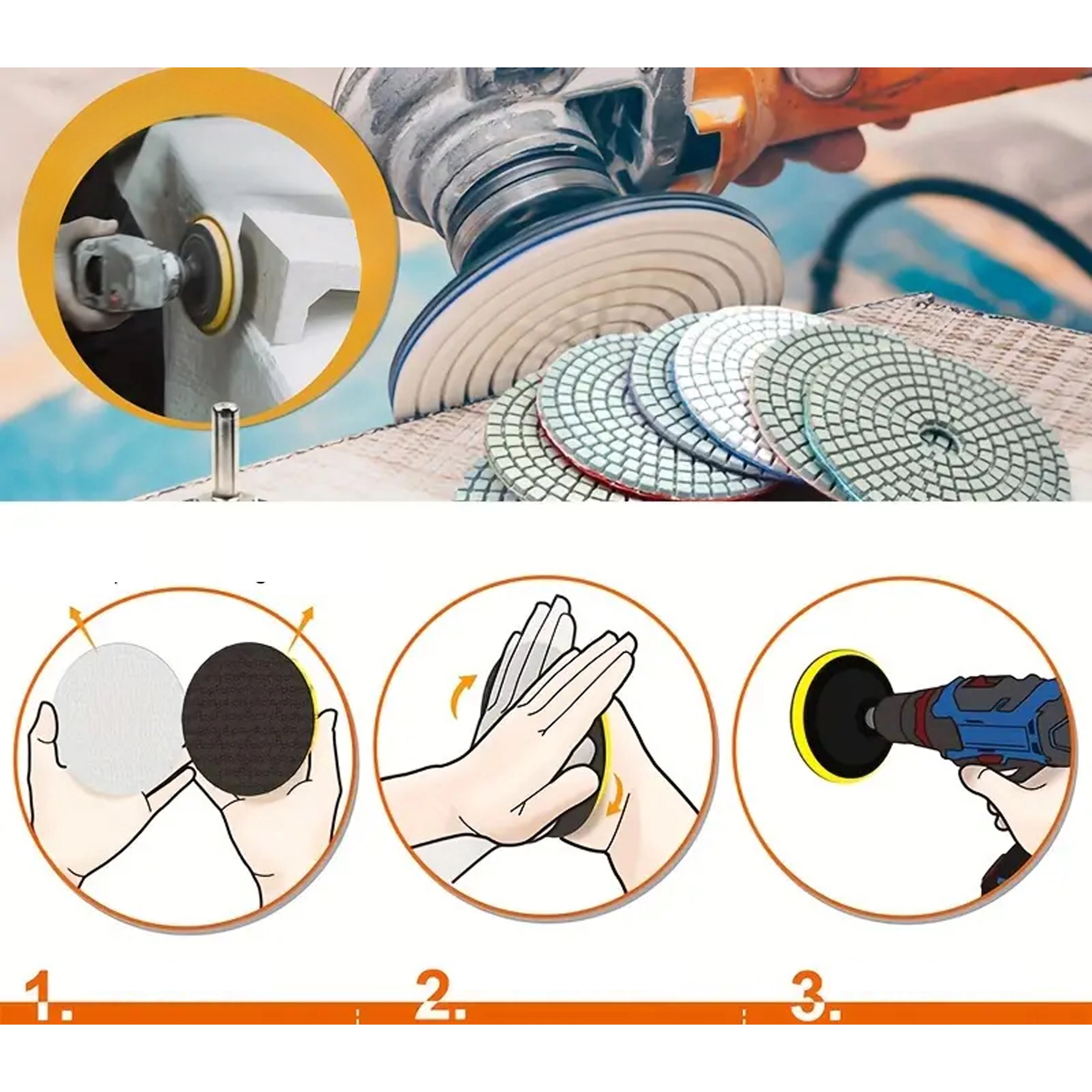 Les disques diamantés de grain 300 sont idéaux pour l’étape intermédiaire de meulage et le pré-polissage des matériaux durs. La structure segmentée flexible et l’ouverture centrale assurent une évacuation fluide de l’eau et de la boue, un fonctionnement stable et un résultat plus propre. Le dos orange en Velcro accélère le remplacement sans outils.