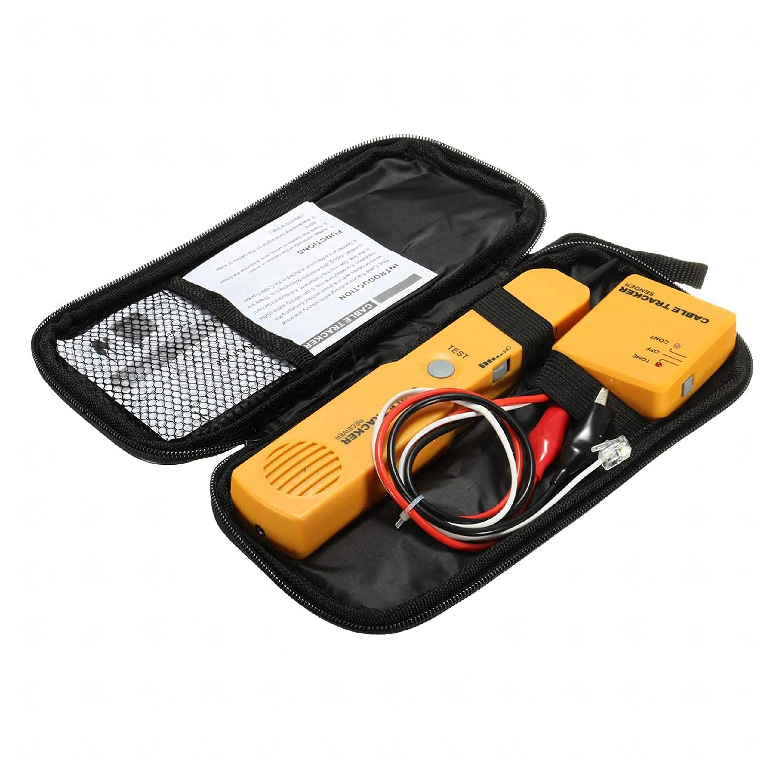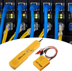 Localisateur et testeur de câbles professionnel pour la recherche rapide de conducteurs, la diagnostic des coupures et le contrôle des lignes téléphoniques RJ11. Grâce au générateur de tonalité et à la sonde sensible, trouvez facilement le bon câble dans un faisceau, testez la continuité et détectez les défauts, sans endommager l’isolation. Livré avec un étui pratique pour un transport sécurisé.