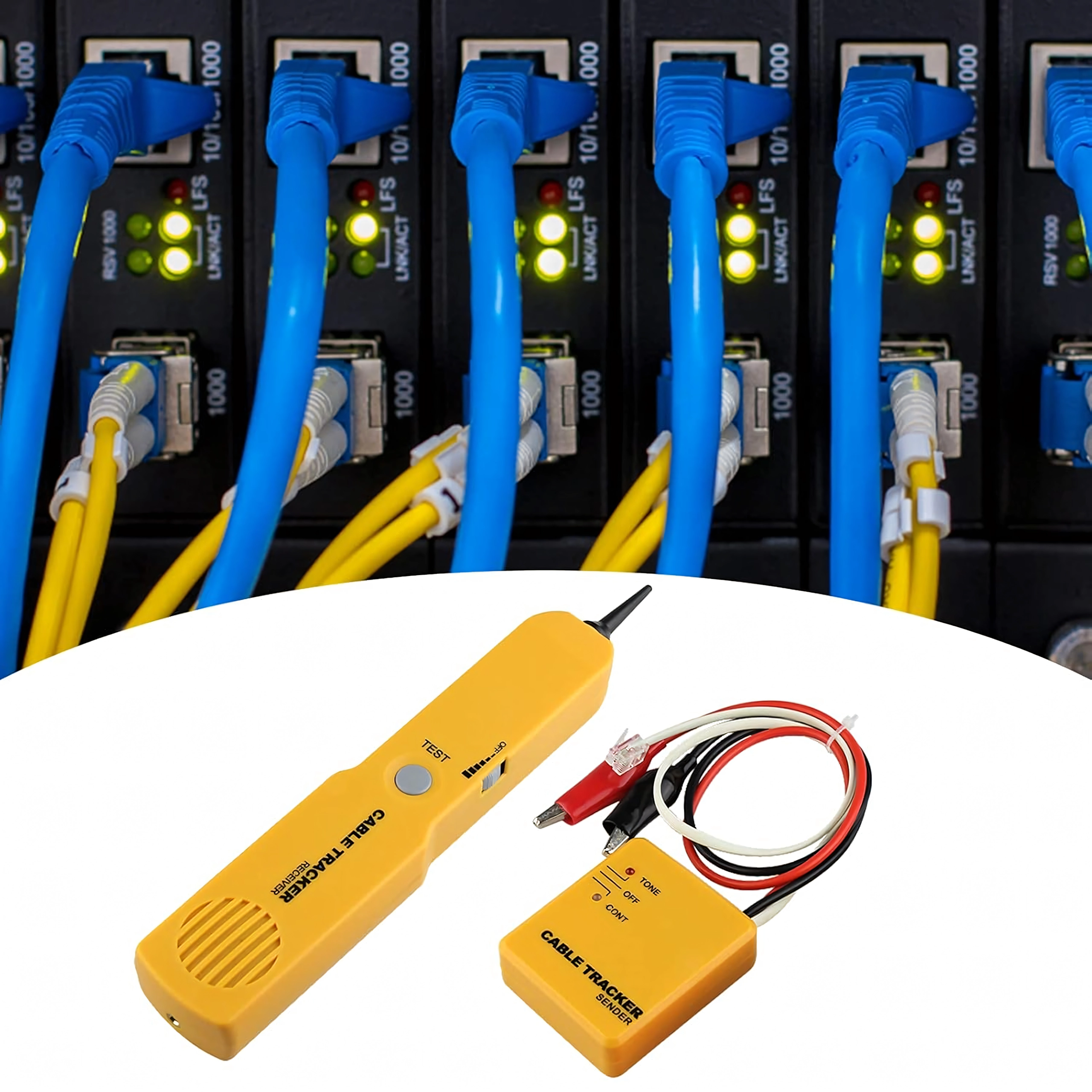 Travaillez plus efficacement : le sélecteur de modes permet de choisir entre TONE pour le suivi des conducteurs et CONT pour le test de continuité. L’indication LED facilite la lecture de l’état, tandis que la couleur jaune vive améliore la visibilité sur le terrain. Les pinces crocodile et le connecteur RJ11 fournis assurent un raccordement rapide à différents types de liaisons.