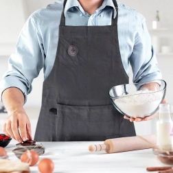 Pour un maximum de praticité, le tablier est doté d’une grande poche frontale où déposer petits ustensiles, torchon ou fiche recette. La matière en coton est agréable au toucher, respirante et facile à laver jusqu’à 40 °C, afin de garder le tablier propre et hygiénique.