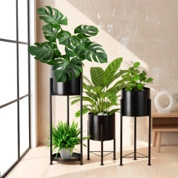 Le lot de trois supports de différentes hauteurs permet de superposer les plantes, d’améliorer l’accès à la lumière et de créer des compositions design dans chaque pièce.