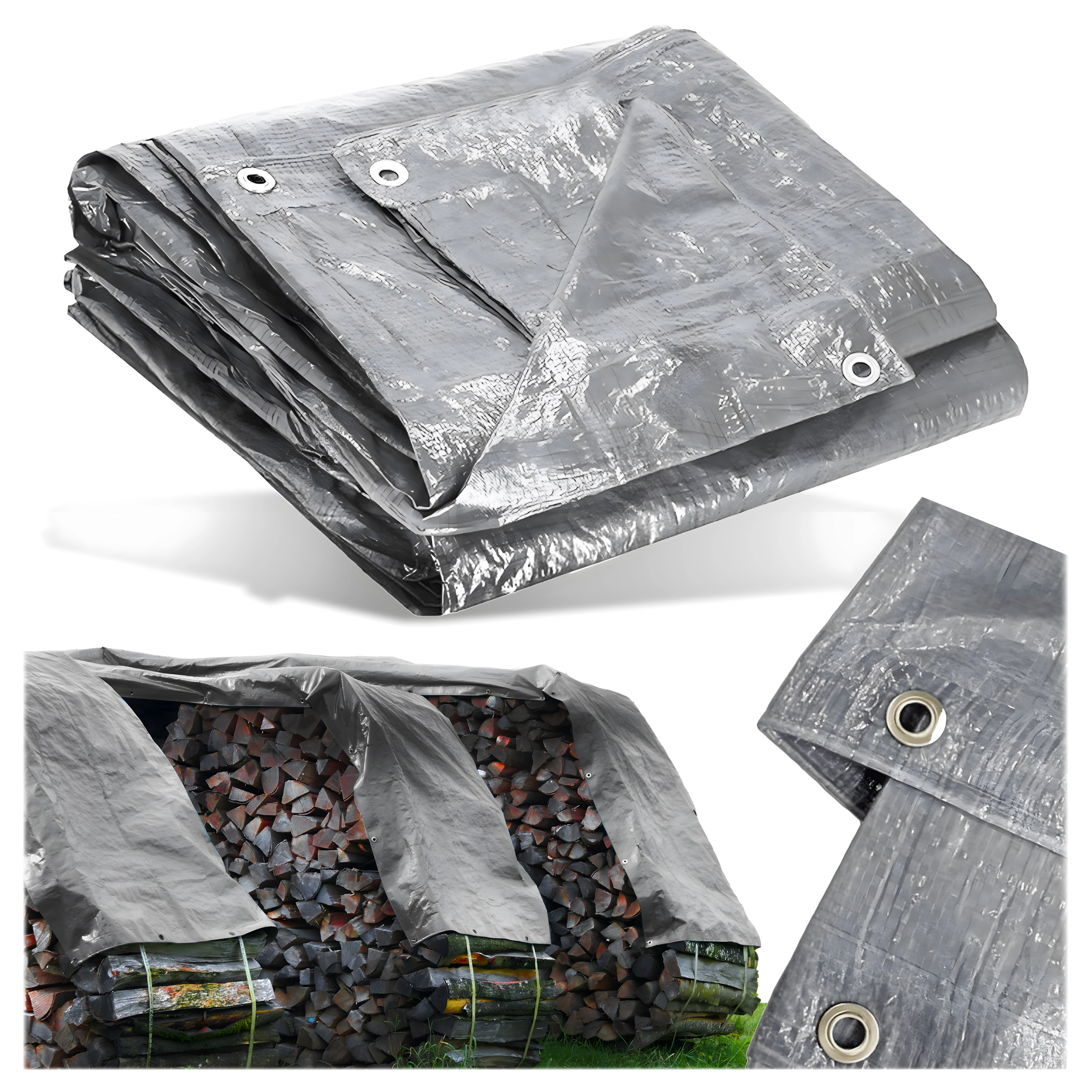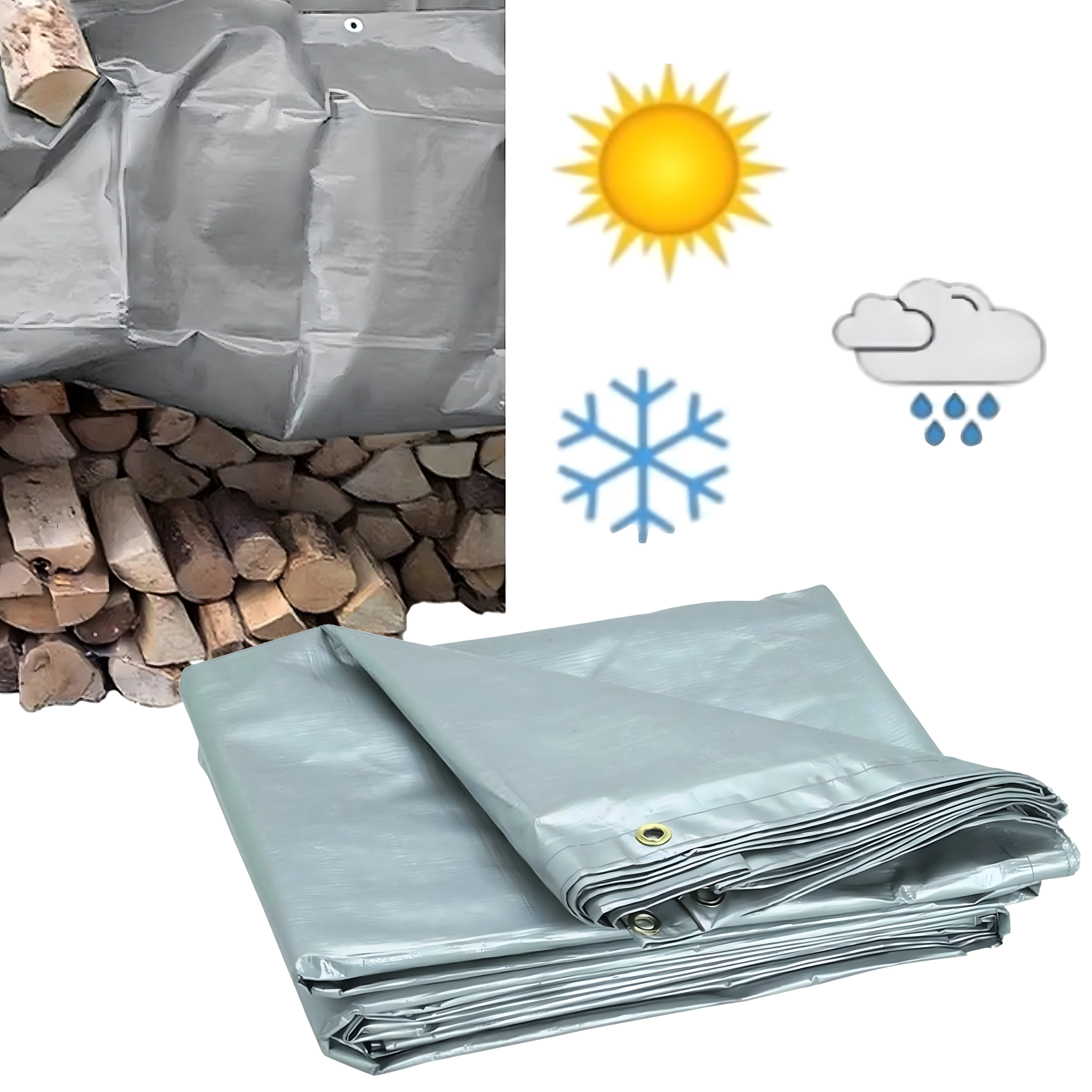 Protège le bois de chauffage, les meubles et les stocks de la pluie, de la neige et du soleil. Les bords renforcés et les œillets permettent une fixation solide.