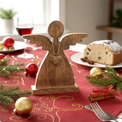 Un ange comme élément central saisissant pour une table aux accents de Noël ou d’hiver. Il apporte chaleur et ambiance.