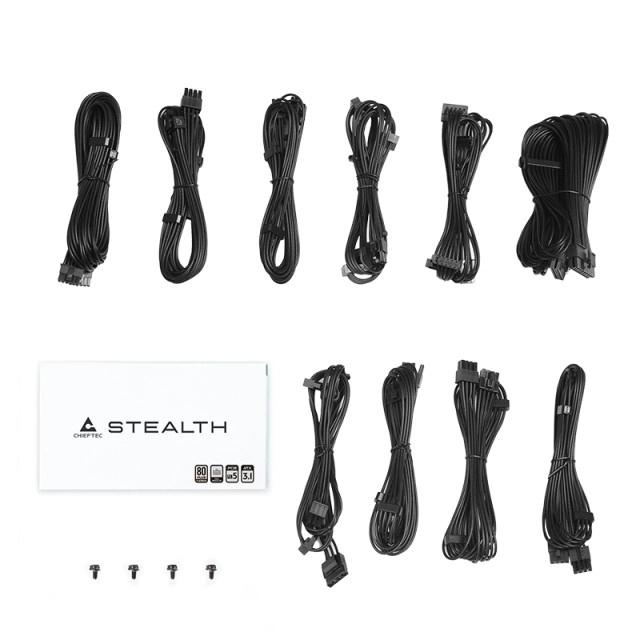 Alimentation haut de gamme CHIEFTEC Stealth de 1000 W conforme au standard Intel ATX 12V 3.1, compatible PCIe Gen5 et offrant une efficacité 80 PLUS Platinum certifiée. Grâce à sa conception entièrement modulaire, à ses condensateurs japonais et à son ventilateur FDB de 135 mm silencieux, elle assure une stabilité de premier ordre, une longue durée de vie et un routage des câbles propre.
