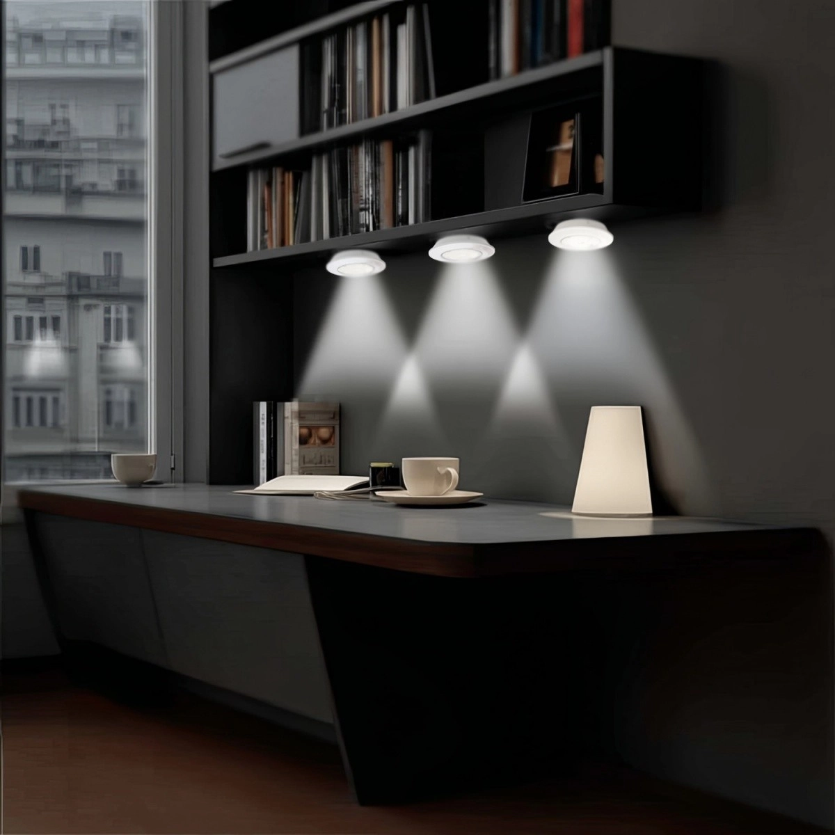 Les lampes puck compactes offrent un éclairage uniforme et directionnel des plans de travail sans ombres – idéal sous les meubles hauts.