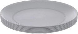 Pratique set de six assiettes plates de 23,5 cm de diamètre dans une élégante couleur grise. Les assiettes sont légères mais résistantes aux fissures et aux chutes, compatibles avec le four à micro-ondes et le lave-vaisselle. Idéales pour le repas quotidien à la maison comme pour les pique-niques, le camping ou les fêtes au jardin.