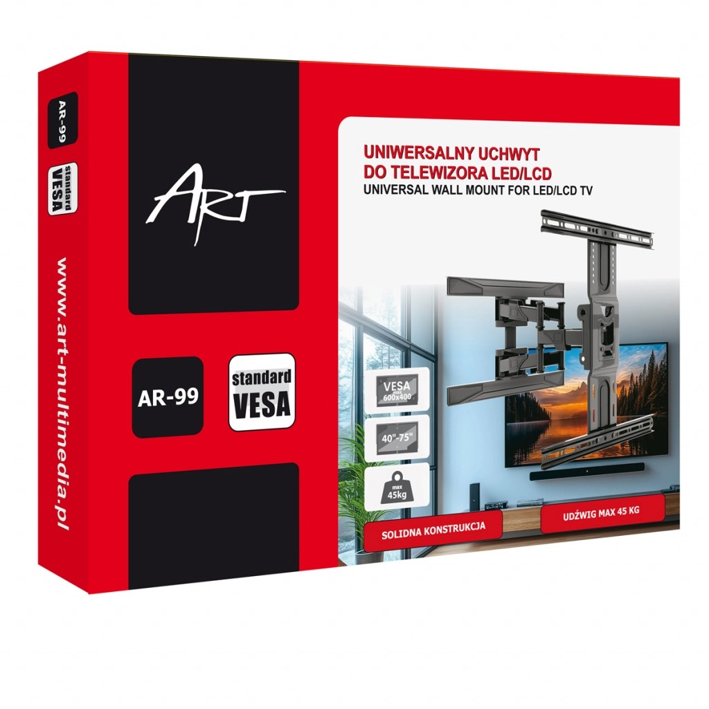 Installez un grand téléviseur en toute sécurité et avec précision. Ce support robuste convient aux écrans 40–75" jusqu’à 45 kg et, grâce à sa large compatibilité VESA jusqu’à 600×400, il s’adapte à la plupart des téléviseurs modernes. Sa construction variable permet de rapprocher la TV du mur ou de l’avancer pour obtenir l’angle de vision idéal.