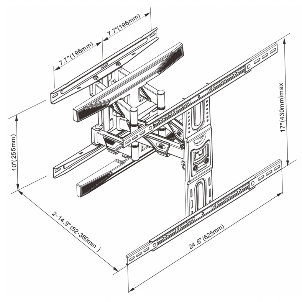 - Distance murale réglable : 52–380 mm