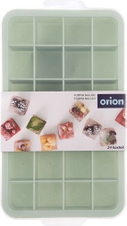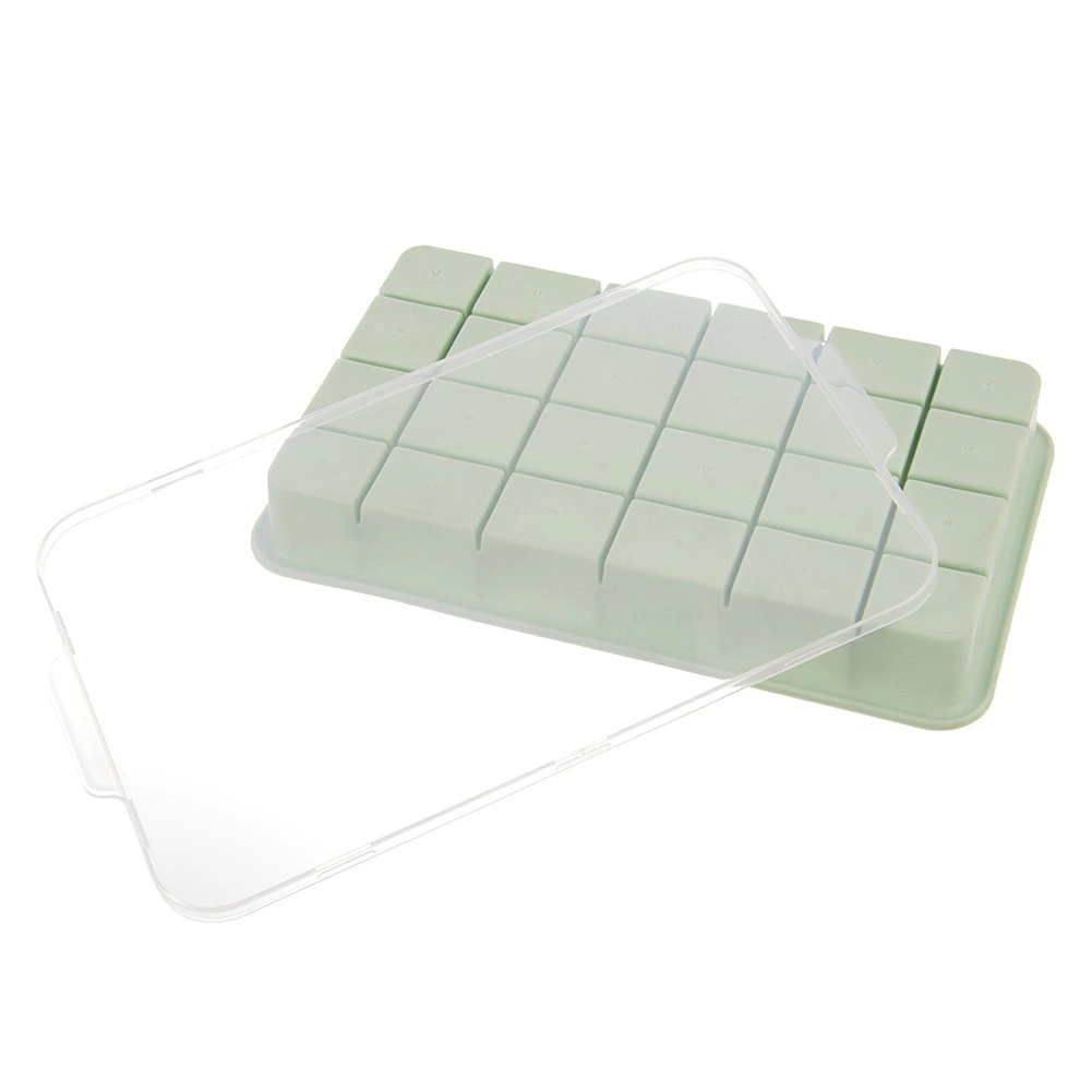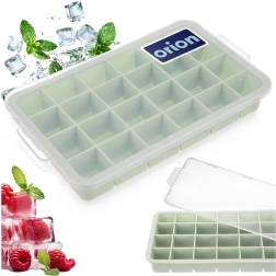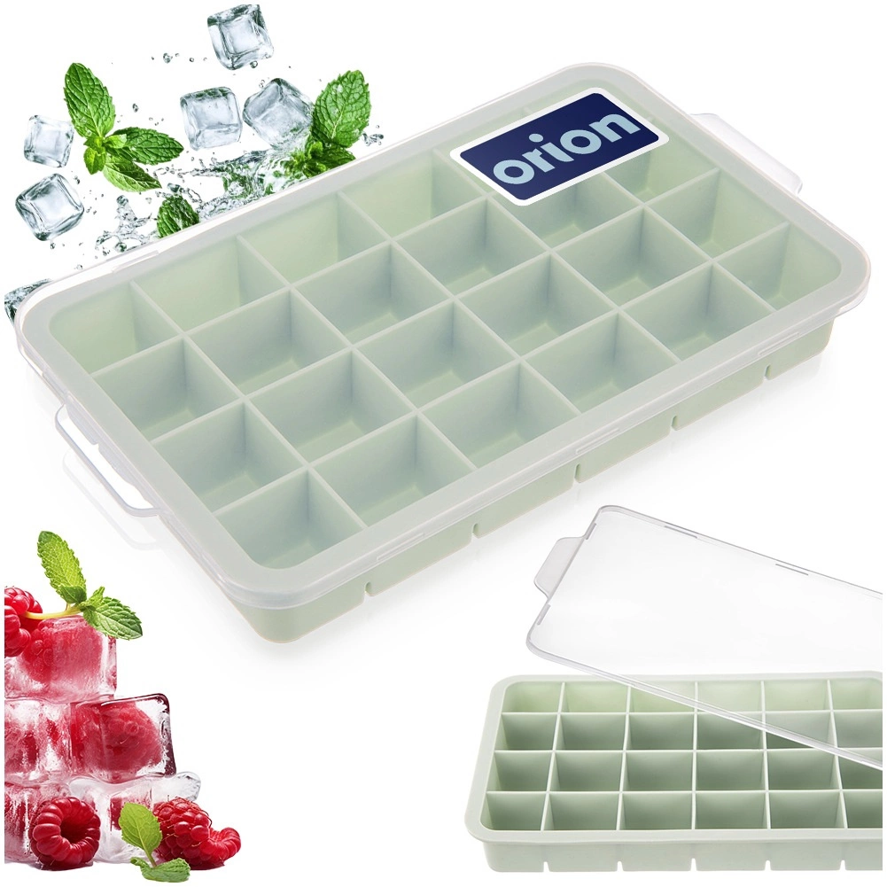 Bac à glaçons pratique avec couvercle transparent, couleur vert pastel, pour une congélation facile et propre. Grâce au matériau élastique, les glaçons se démoulent sans effort, le couvercle empêche les fuites et l’absorption des odeurs et le bac prépare jusqu’à 24 glaçons à la fois. Compatible lave-vaisselle et idéal pour glaçons, jus, sorbets et bouillons.