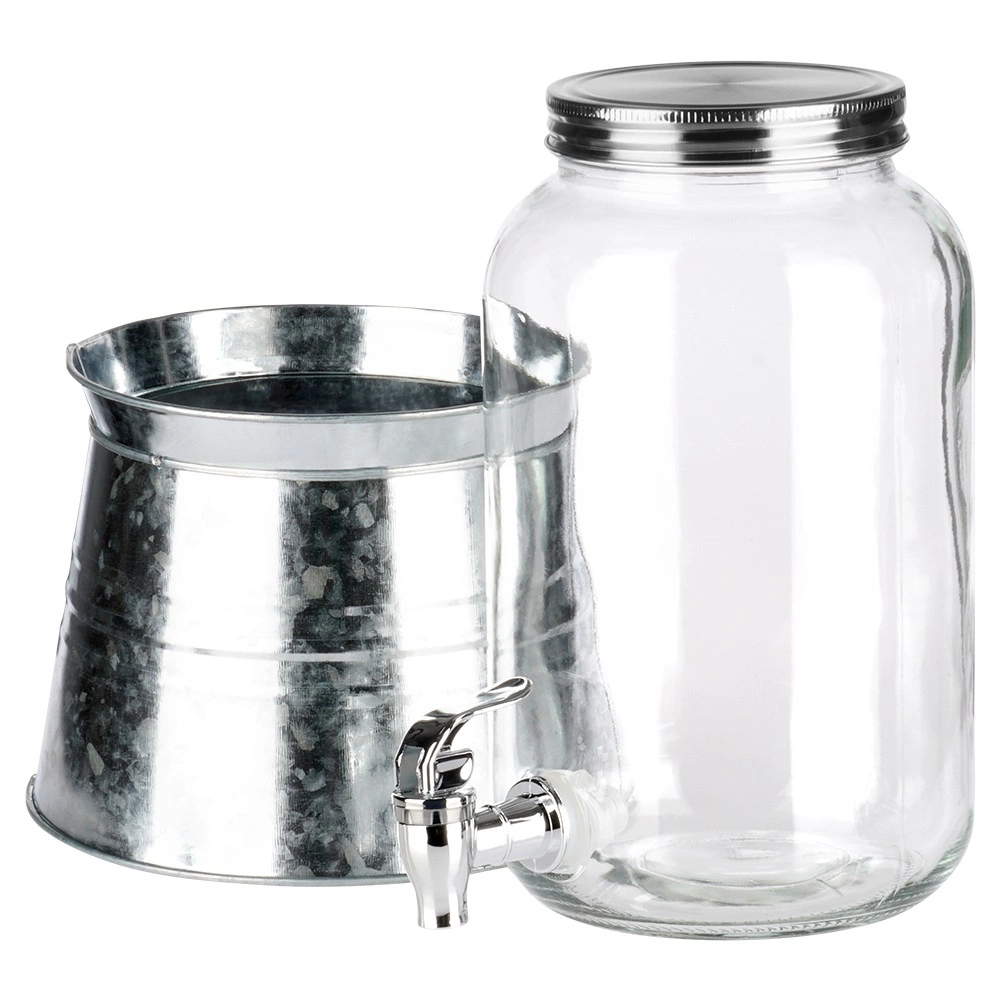 Le support en métal galvanisé élève le récipient à la hauteur idéale, vous permettant de glisser facilement le verre sous le robinet pour un service propre et sans gouttes.