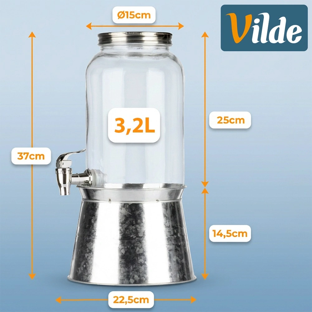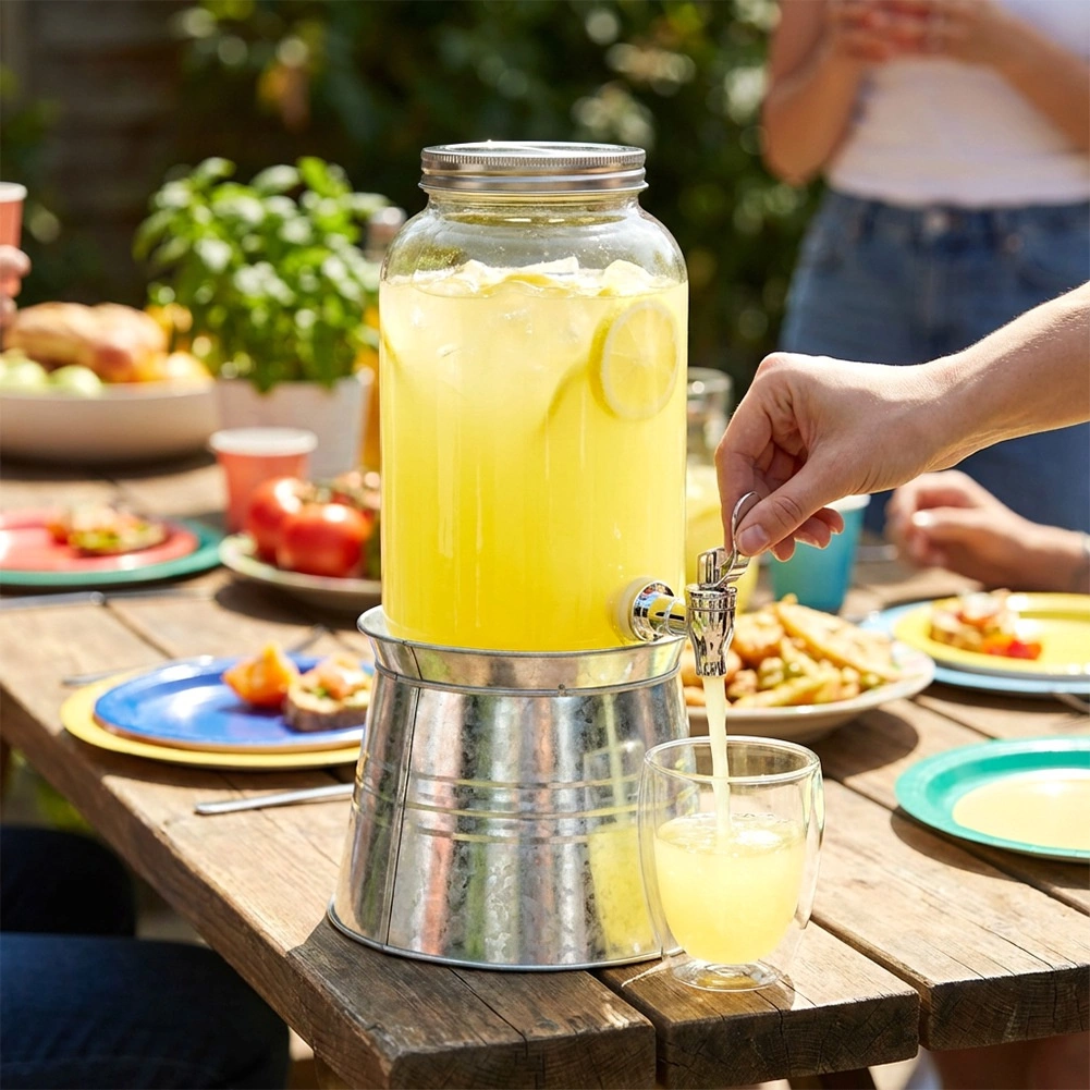 Le distributeur est fabriqué en verre épais de qualité au toucher lisse, et le robinet permet un versement fluide et propre. Parfait pour les fêtes au jardin, barbecues, réunions de famille, ainsi que pour les cafés et bars, où il mettra en valeur avec style limonades, thé glacé ou eaux fruitées.