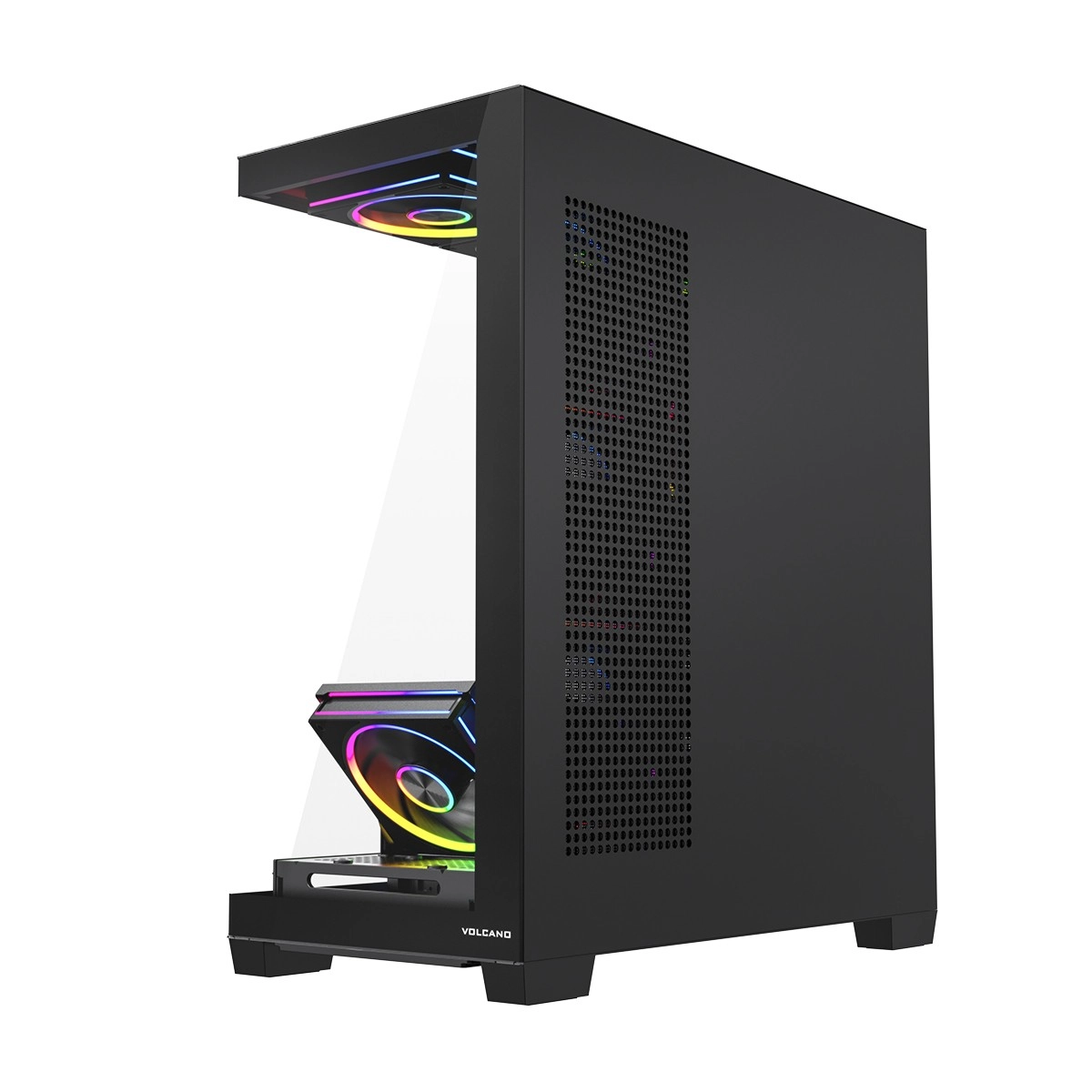 MODECOM Volcano Stellar Plus ARGB Midi 8F est un boîtier mid‑tower moderne axé sur l’esthétique, les performances et la simplicité de montage. Les panneaux avant et latéral en verre trempé mettent superbement en valeur les composants, tandis que huit ventilateurs ARGB et un ruban LED créent un éclairage spectaculaire avec un excellent refroidissement. Grâce à l’espace élargi derrière la carte mère, la gestion des câbles est claire et soignée.