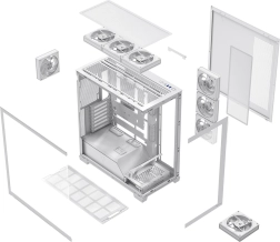 Le boîtier est prêt pour l’avenir : prise en charge des cartes mères ATX, mATX, ITX et modèles à connecteurs inversés (BTF), watercooling jusqu’à 360 mm en haut et sur le côté et 120 mm à l’arrière. Grâce à un espace plus large derrière le plateau, des passe‑câbles en caoutchouc et des sangles auto‑agrippantes pour la gestion des câbles, votre build sera propre et professionnel. Les panneaux latéraux snap‑on sans outils accélèrent l’entretien et les mises à niveau.