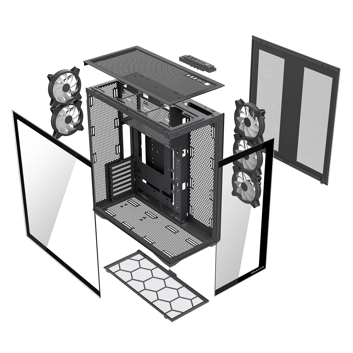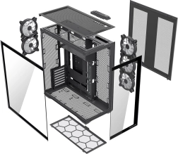 Les panneaux avant et latéral en verre trempé transforment votre configuration en pièce maîtresse design. Mettez en avant vos composants, les effets ARGB et un câblage soigné – tout sera parfaitement visible.