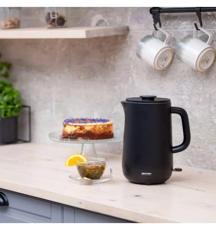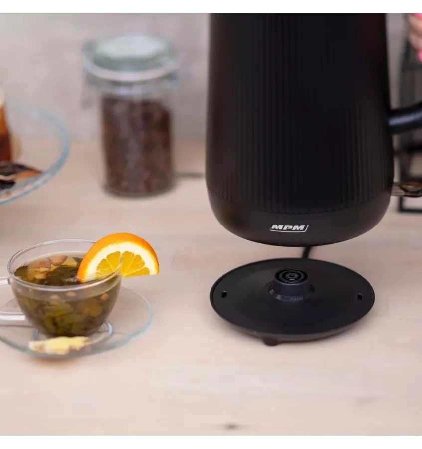 Bouilloire sans fil élégante avec une double paroi qui maintient l’eau chaude plus longtemps et assure un fonctionnement silencieux. Le récipient intérieur en acier inoxydable monobloc préserve le goût naturel des boissons, tandis que la paroi extérieure froide en plastique rainuré est sûre au toucher et offre une prise en main antidérapante. Idéale pour la préparation quotidienne de thé, de café et d’infusions.