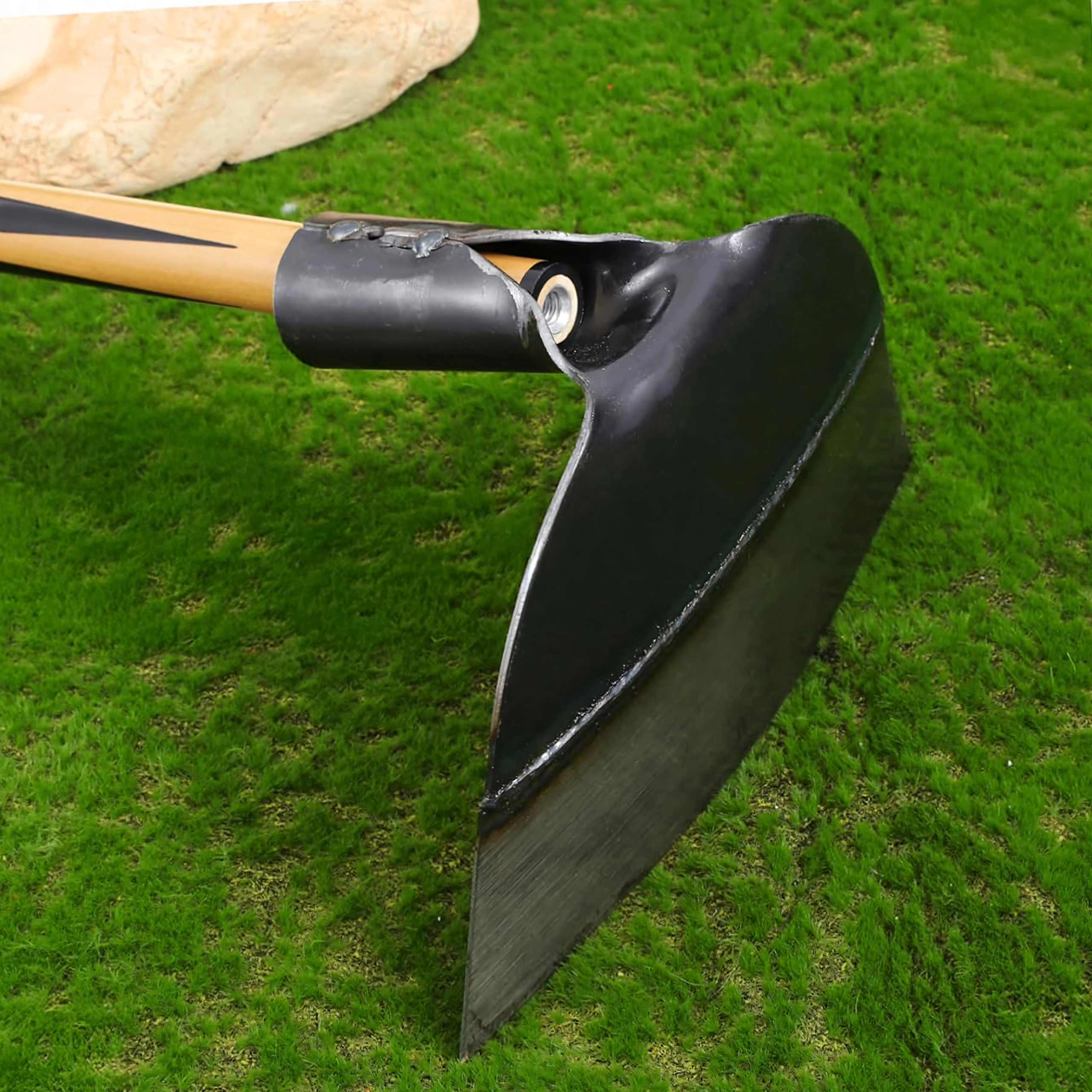 La partie de travail de 18 × 14 cm permet un enlèvement rapide des mauvaises herbes ainsi qu’un étalement et un façonnage efficaces du sol. L’emmanchement est prévu pour un manche de 3,2 cm de diamètre (manche non inclus), vous permettant de choisir la longueur et le type de poignée selon vos préférences.