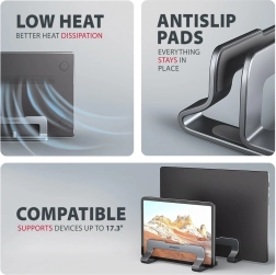 Placer l’ordinateur portable à la verticale améliore le flux d’air autour des ventilateurs, ce qui contribue à une dissipation thermique efficace, à des performances stables et à une durée de vie prolongée de l’appareil. Il garde également le clavier propre et protège l’ordinateur contre la poussière ou les éclaboussures accidentelles, puisqu’il est au-dessus du plan de travail. Ses dimensions compactes et sa finition grise élégante conviennent au bureau à domicile, à l’entreprise comme aux déplacements.