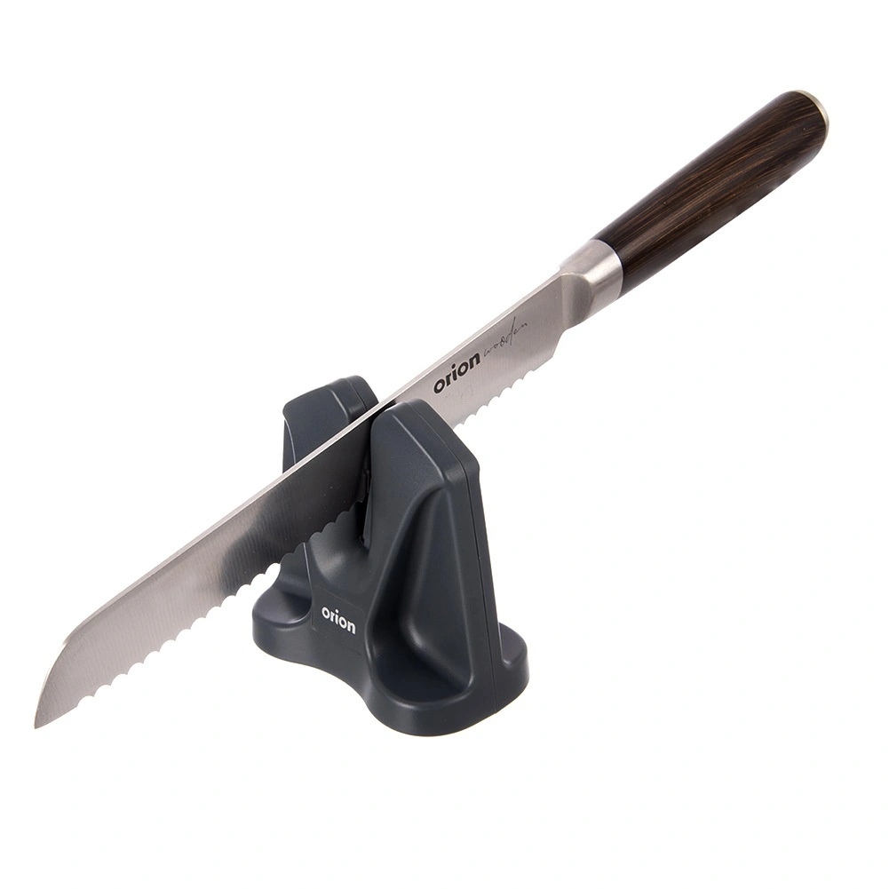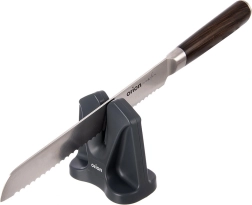 Pratique, l’aiguiseur 2‑en‑1 est conçu pour l’entretien quotidien des couteaux de cuisine. Il permet un affûtage simple et délicat des lames lisses classiques, des couteaux à pain ainsi que des ciseaux. L’angle d’affûtage guidé automatiquement aide à obtenir des résultats homogènes sans réglages ni compétences particulières.
