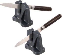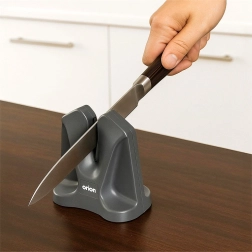 Le corps robuste en plastique gris et les éléments abrasifs en carbure offrent une longue durée de vie et des performances fiables. Ses dimensions compactes 9,5 × 5,5 × 9,5 cm facilitent le rangement et permettent d’avoir l’aiguiseur toujours à portée de main.