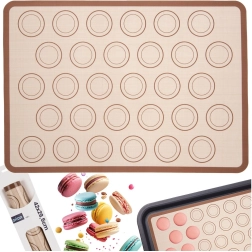 Ce tapis en silicone facilite la préparation des macarons français et d’autres desserts ronds. Grâce à 30 cercles repérés en deux tailles, vous conservez aisément une taille et des espacements uniformes. La surface antiadhésive assure un démoulage aisé des pièces cuites et un travail plus propre sans pâte qui colle.